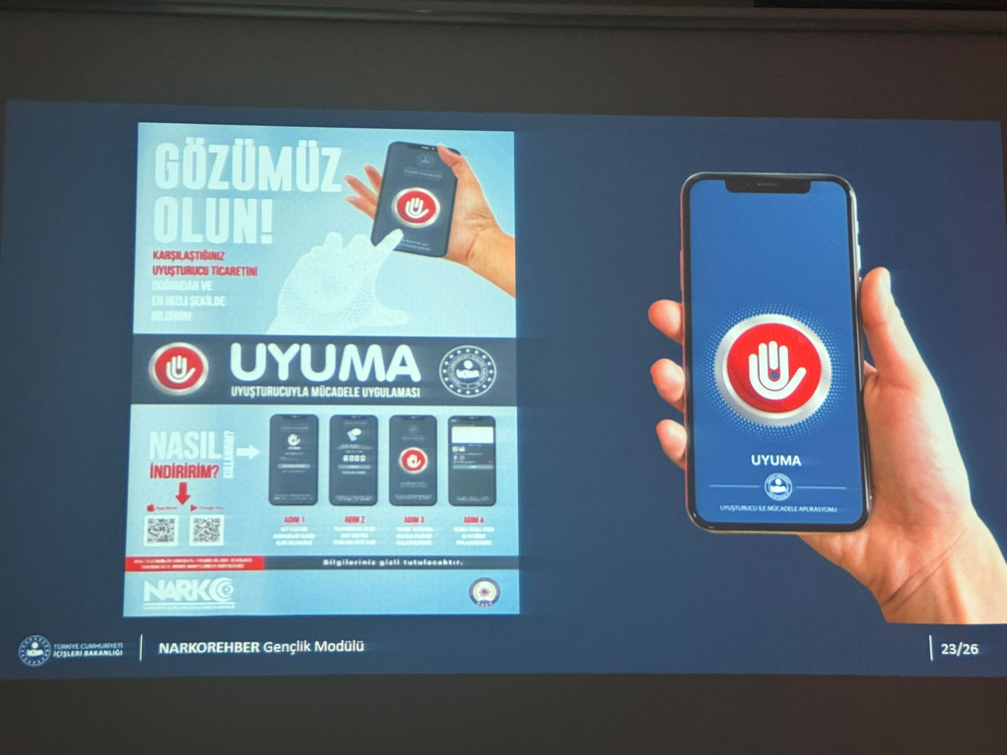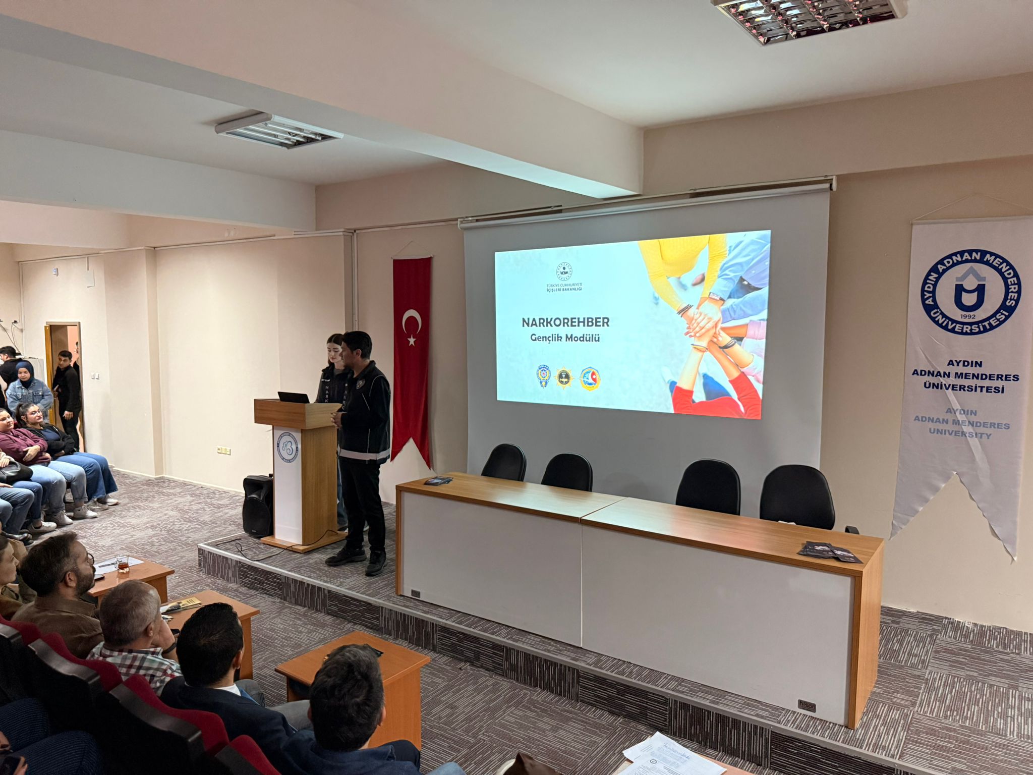 Eğitim kapsamında Narkotik Büro Şefliğinden Komiser Furkan KARADAŞ ve Komiser Damla GÜRKAN tarafından bağımlılıkla etkin mücadelede alınan tedbirler anlatıldı. Gençliğimizi fiziksel, ruhsal ve psikolojik olarak sağlıklı yetiştirmek ve her türlü bağımlılık unsuruna karşı korumak için verilen mücadelenin önemi ifade edildi. Soru cevap bölümünün ardından program sona erdi.