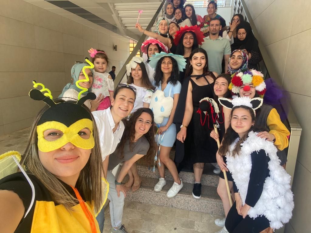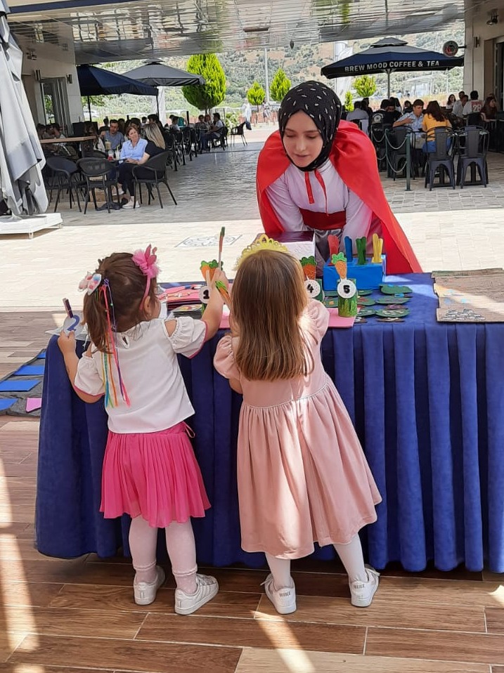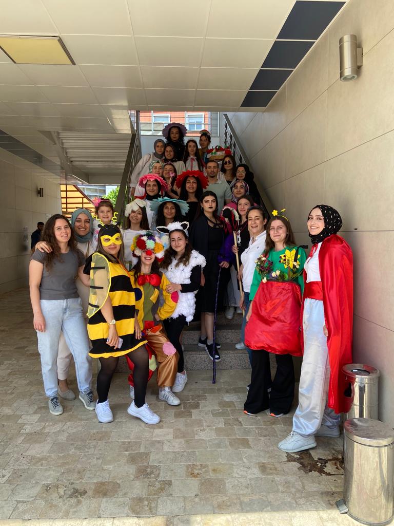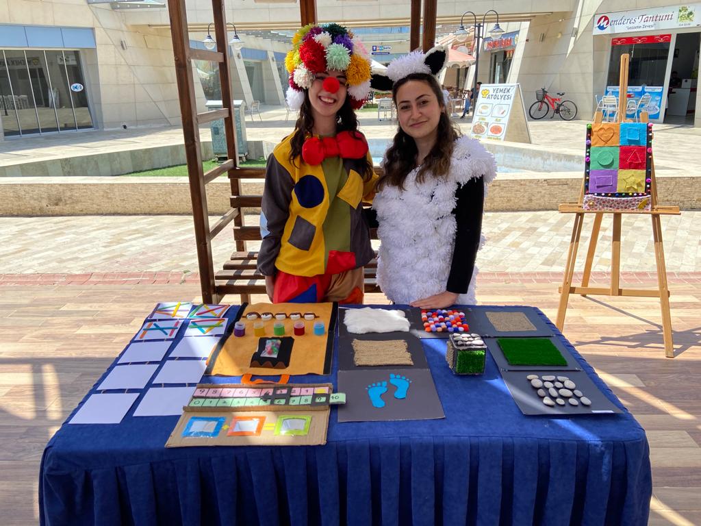 Etkinlik süresinde çocuk gelişimi öğrencileri ders kapsamında hazırladıkları kostümlerle sergiyi gezmeye gelen konuklara eğlenceli bir şekilde eğitim materyallerini tanıttılar.