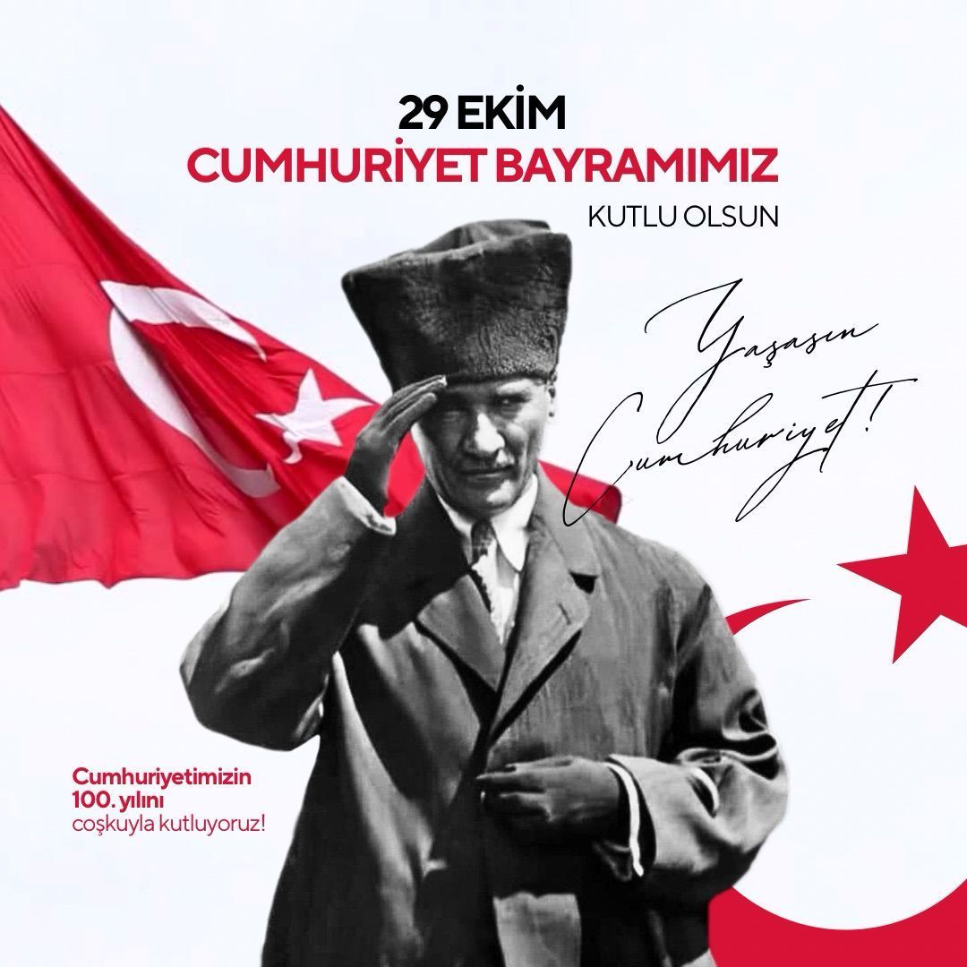 Ulu Önder Mustafa Kemal Atatürk önderliğinde ilan edilen 29 Ekim Cumhuriyet Bayramı’nın 100. yılı kutlu olsun.