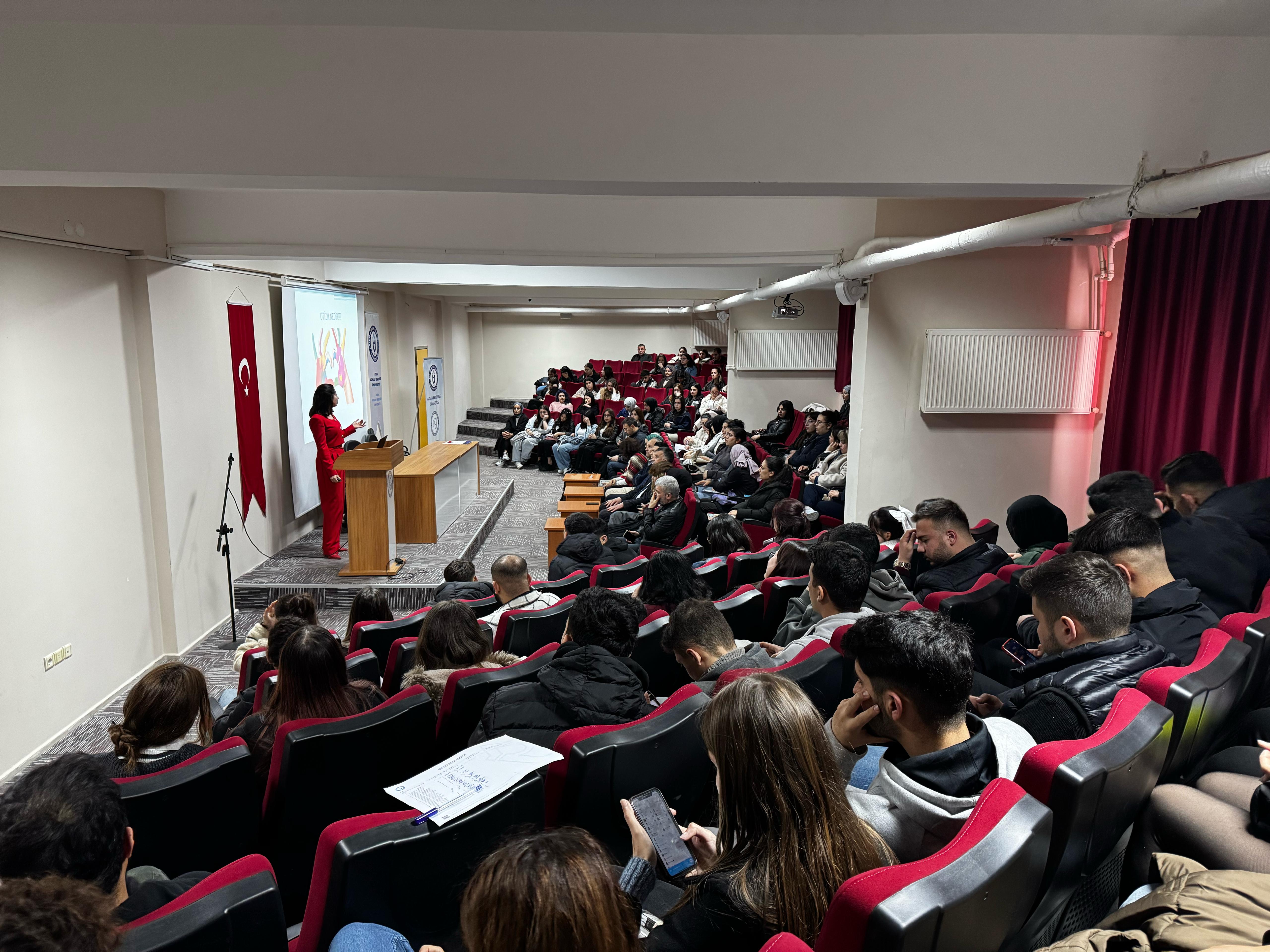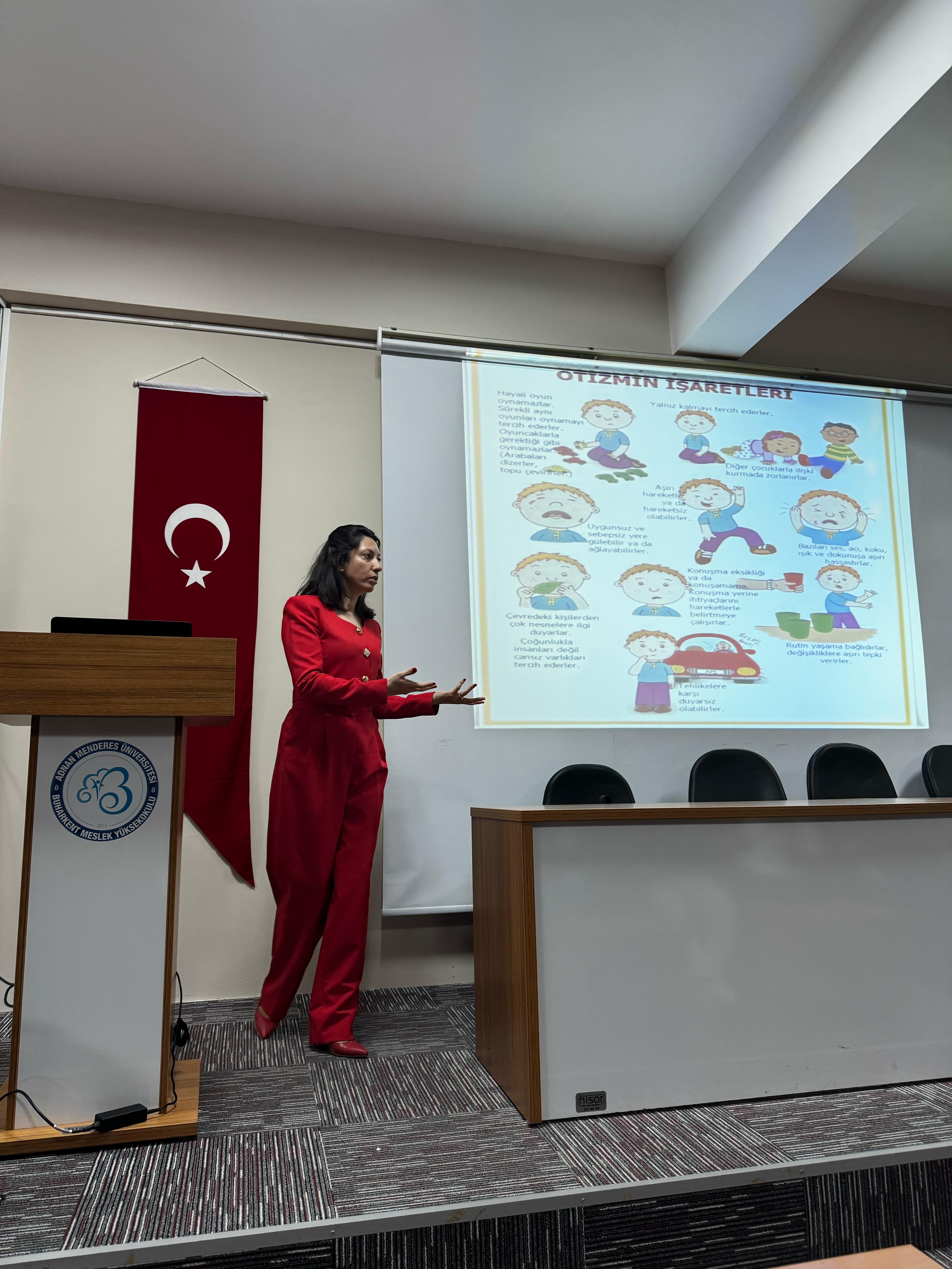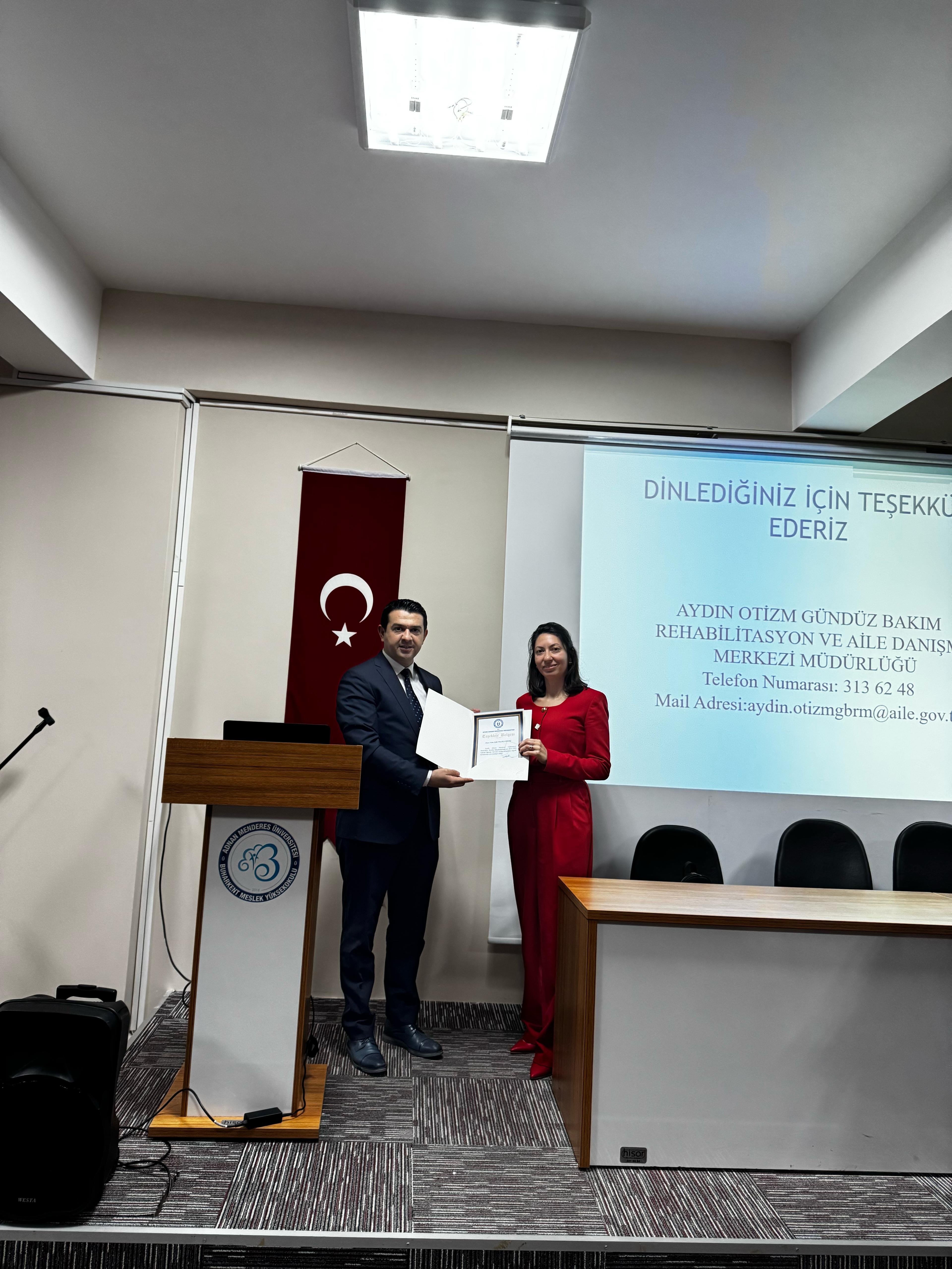 09 Nisan 2025 Çarşamba Günü Buharkent Meslek Yüksekokulu Mehmet PARMAKSIZOĞLU Konferans Salonunda Çocuk Gelişimi Bölümü Öğretim Görevlilerinin düzenlediği, Aydın Otizm Gündüz Bakım Rehabilitasyon ve Aile Danışma Merkezi Müdürlüğü Psikoloğu Hasan ULUTAŞLI ve Çocuk Gelişim Uzmanı Aylin VOLAKA AKDAĞ tarafından 2 Nisan Otizm Farkındalık Ayı nedeniyle okulumuz akademik personeli ve öğrencilerine Otizm nedir? konulu seminer düzenlendi.