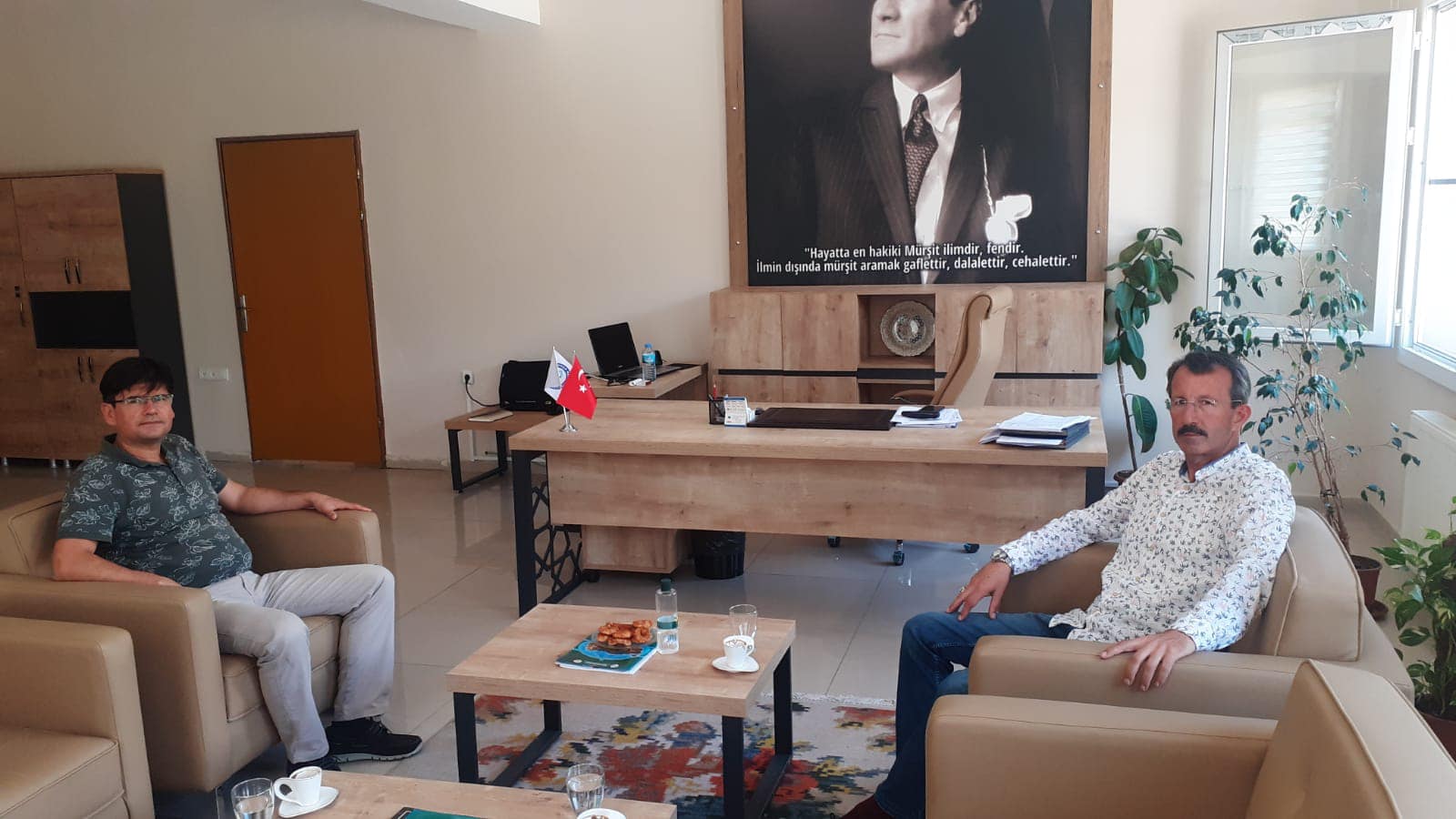 "ESKİ MÜDÜRÜMÜZDEN ZİYARET"Buharkent Meslek Yüksekokulu müdürlük görevini vekaleten yürütmüş olan Prof. Dr. Hamdi AVCI 08.06.2022 Çarşamba günü, asaleten göreve atanan Dr. Öğr. Üyesi Ahmet AYTAÇ’ı makamında ziyaret ederek yeni görevinde başarılar diledi.
