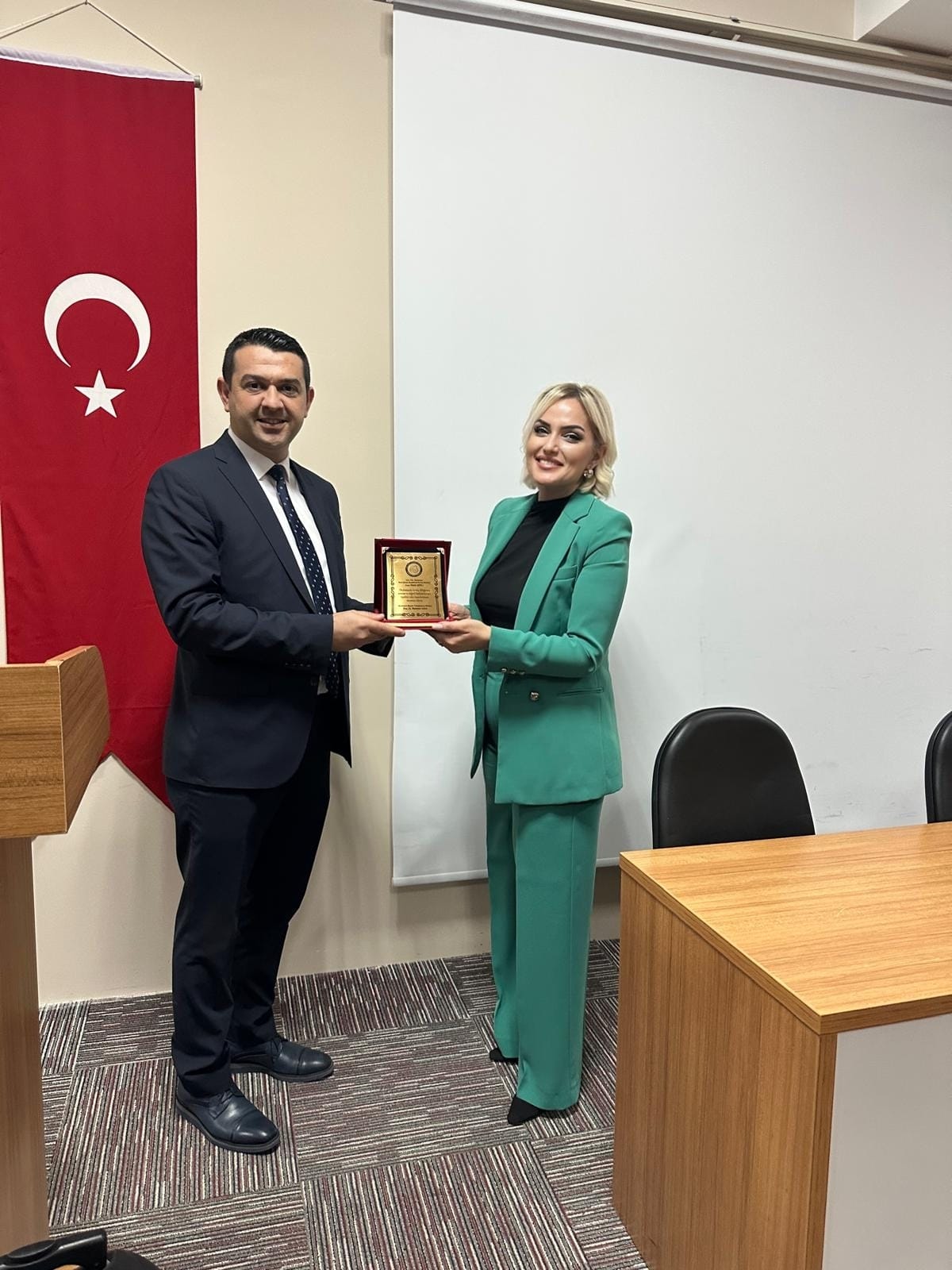 Etkinlik, Okul Müdürümüz Doç. Dr. Mehmet KAYA tarafından Uzm. Psk. Danışman Deniz ŞENLİ'ye plaket takdimi ile son buldu.