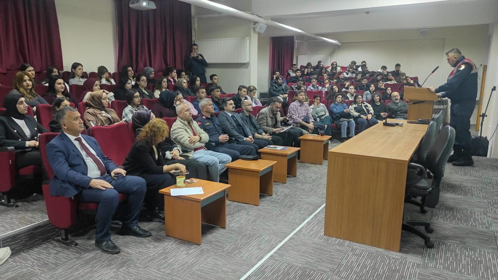 Sunumda Jandarma Teşkilatı’nın kurumsal yapısı, kariyer imkânları ve mesleki tecrübeler ele alınırken, öğrencilerin yönelttiği sorular da samimiyetle yanıtlandı. Program, öğrenciler açısından hem bilgilendirici hem de yol gösterici nitelik taşıdı.