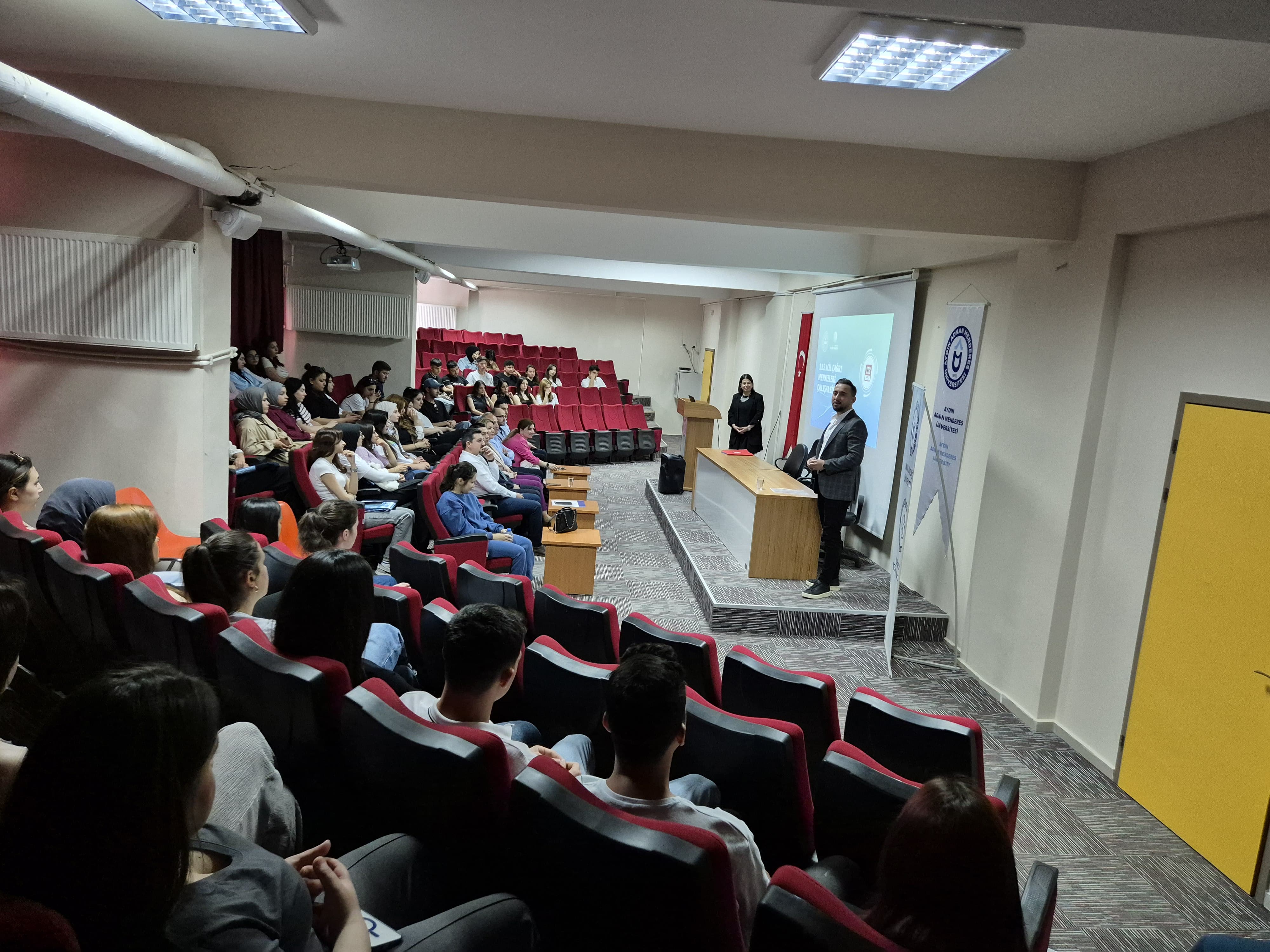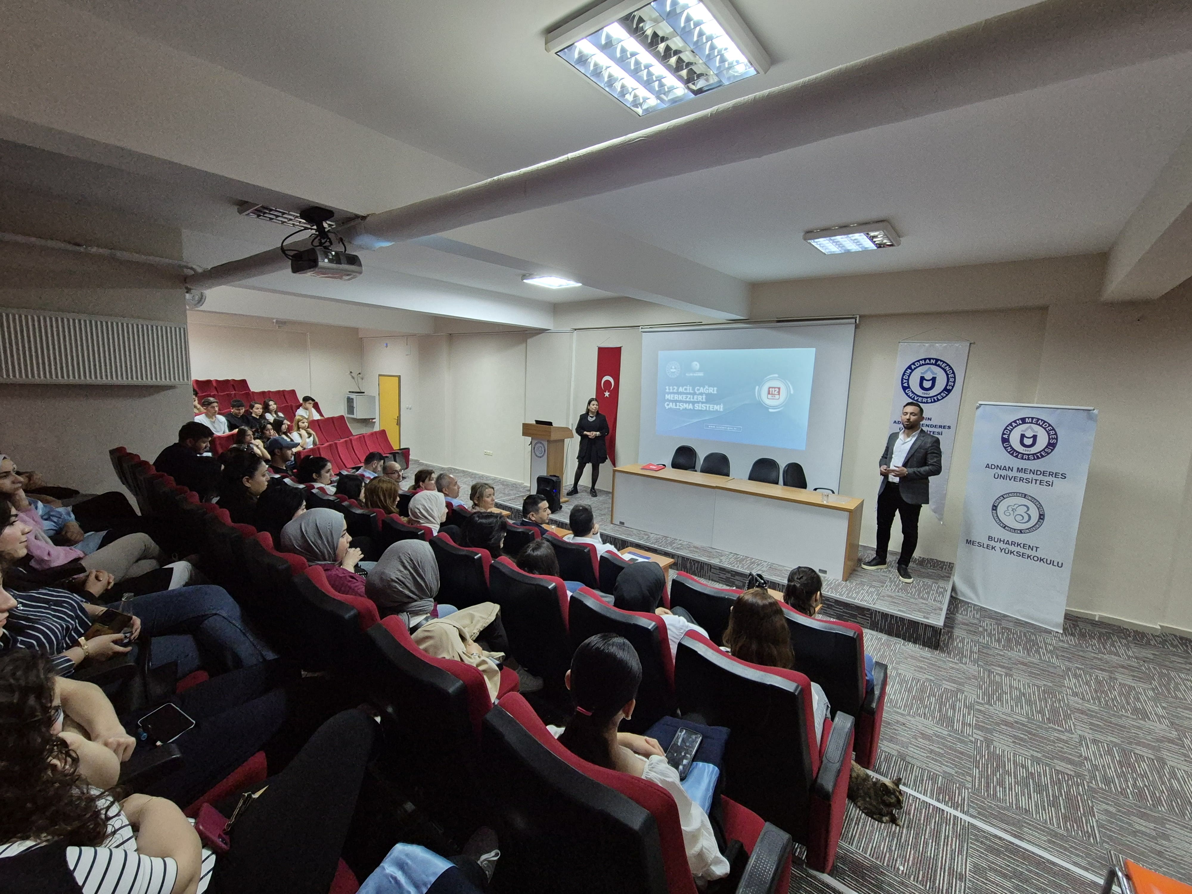 Etkinliğe, Aydın 112 Acil Çağrı Merkezi Müdürü Neşe ŞAHİN ile Veri Hazırlama ve Kontrol İşletmenleri Rukiye ÇETİNDAĞ AFŞAR ve Onur ASLANTÜRK katıldı. Program süresince öğrencilere; sektörün beklediği mesleki yeterlilikler, çağrı merkezi alanındaki teknik uygulamalar, vaka değerlendirme süreçleri, kariyer imkanları, kamu hizmetinde iletişim ve mesleki etik gibi çeşitli konularda bilgi verildi. Kurum temsilcileri, uygulamaya yönelik deneyimlerini de paylaştı.