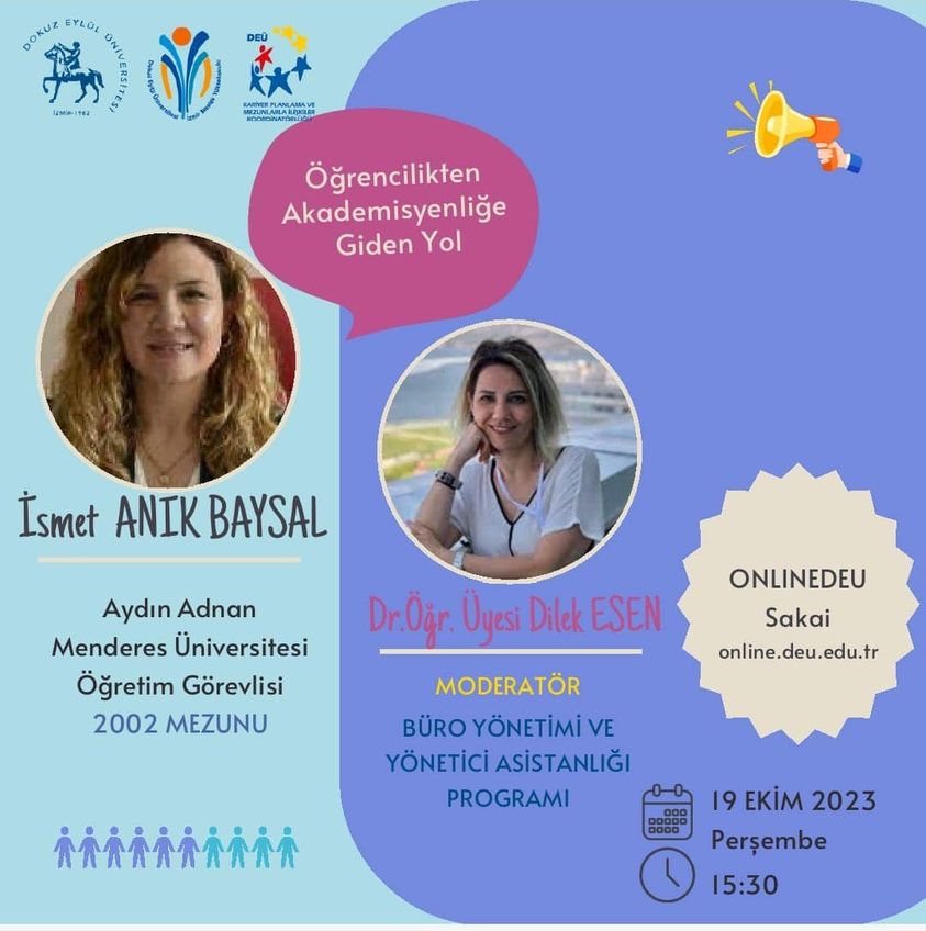 Buharkent Meslek Yüksekokulu Büro Hizmetleri ve Sekreterlik Bölümü Bölüm Başkan V. Öğr. Gör. İsmet ANIK BAYSAL tarafından 19.10.2023 Perşembe günü Dokuz Eylül Üniversitesi İzmir Meslek Yüksekokulu Büro Yönetimi ve Yönetici Asistanlığı Programı öğrencilerine yönelik motivasyon semineri verilecektir.