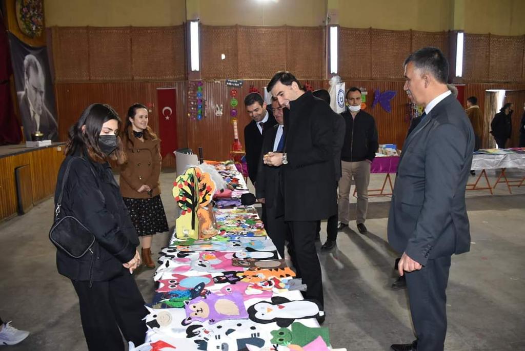 "OKULUMUZ ÇOCUK GELİŞİMİ BÖLÜMÜ ÖĞRENCİLERİNDEN SERGİ"Okulumuz tarafından Çocuk Gelişimi bölüm öğrencilerinin yapmış olduğu ürün ve materyallerle 12.01.2022 tarihinde Kaymakamımız Sn. Levent Küçük, Belediye Başkanımız Sn. Mehmet Erol, İlçe Protokolü, akademik-idari personelimiz ve öğrencilerimizin katılımı ile sergimiz düzenlenmiştir. Sergi Öğr. Gör. Fatma Gülten İLAVLI DURMAZ'ın vermiş olduğu "Okul Öncesi Eğitimde Araç Gereç Geliştirme" ve "Çocukta Sanat ve Yaratıcılık" dersleri doğrultusunda hazırlanmış olup, yoğun ilgi görmüştür. Müdürümüz Dr. Öğr. Üyesi Necati ÇOBANOĞLU'nun sergimiz için vermiş olduğu emeklerinden dolayı teşekkür ederiz.