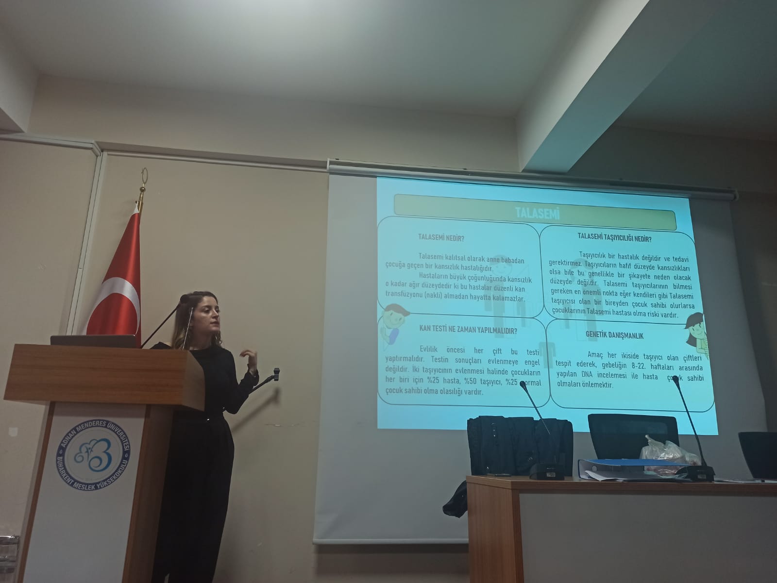 Proje kapsamında Buharkent İlçe Hastanesi doktorlarından Dr. Meltem EMEKTAR okulumuz kız öğrencilerinden, kadın akademik ve idari personelinden oluşan dinleyicilere sunum yapmıştır.