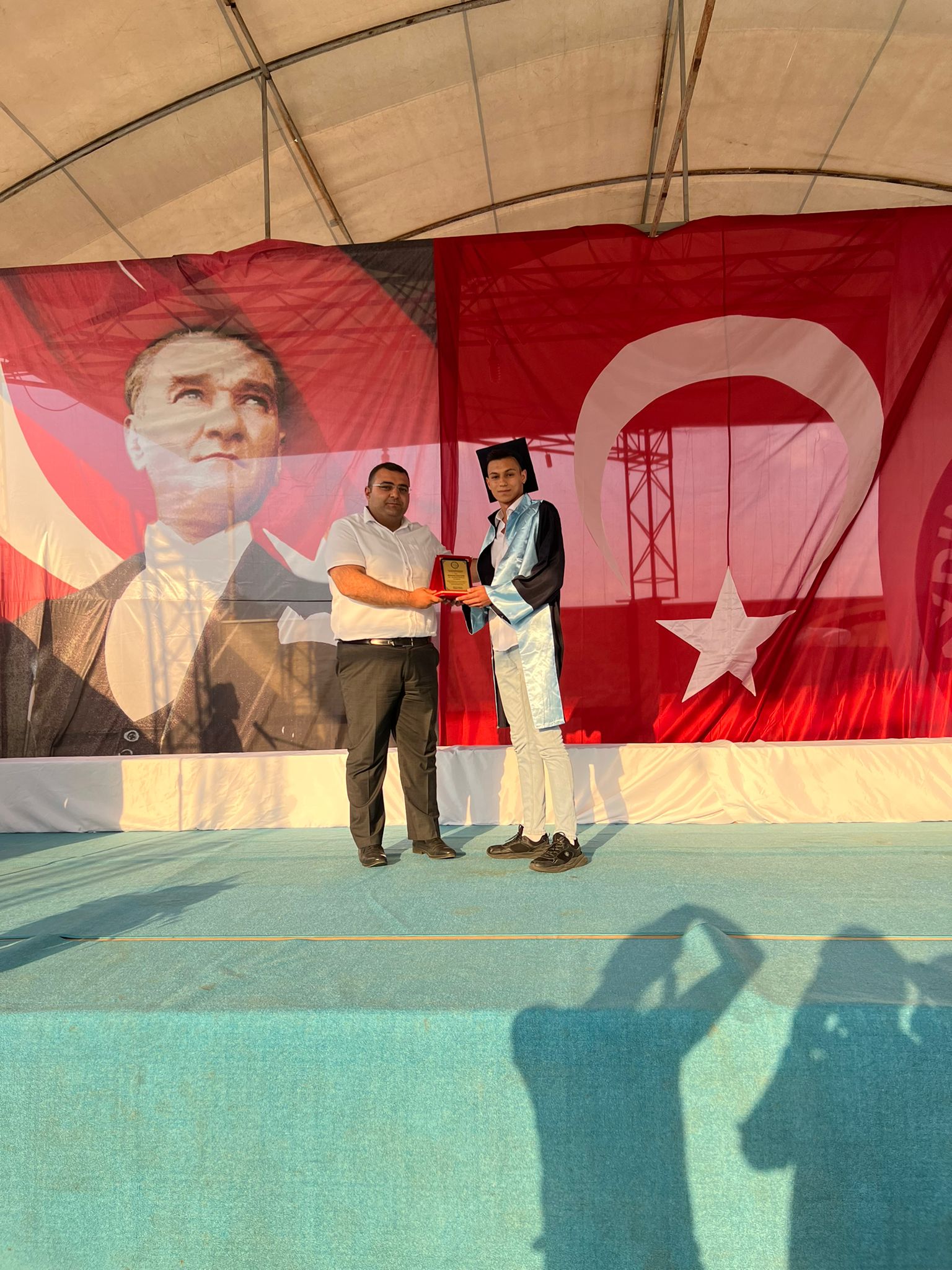 Dereceye giren öğrencilerimize plaketlerinin verilmesinin ardından, tüm öğrencilere başarı belgeleri dağıtıldı. Ayrıca tören sırasında, Yüksekokul Müdürümüz Dr. Öğr. Üyesi Ahmet AYTAÇ'ın jestiyle, 2 mezun öğrencimizin Anne ve Babası, çocuklarına mezuniyet belgelerini kendi elleriyle verme mutluluğunu yaşadılar. Toplu fotoğraf çekimini takiben öğrencilerimiz tarafından heyecanla beklenen kep atma törenine geçildi.