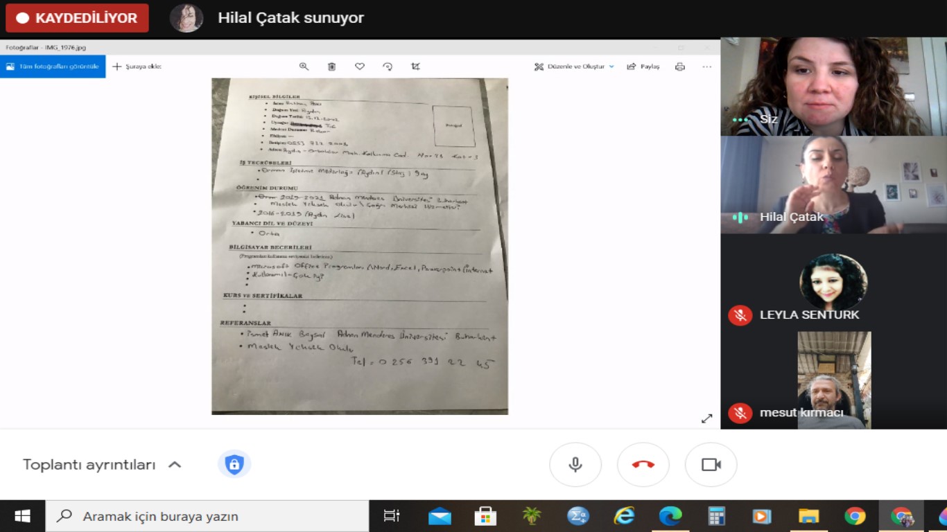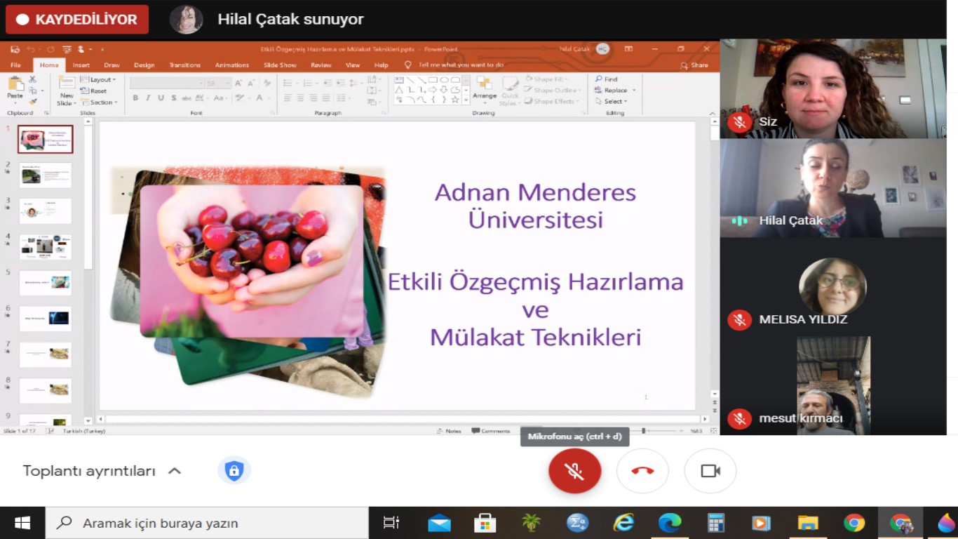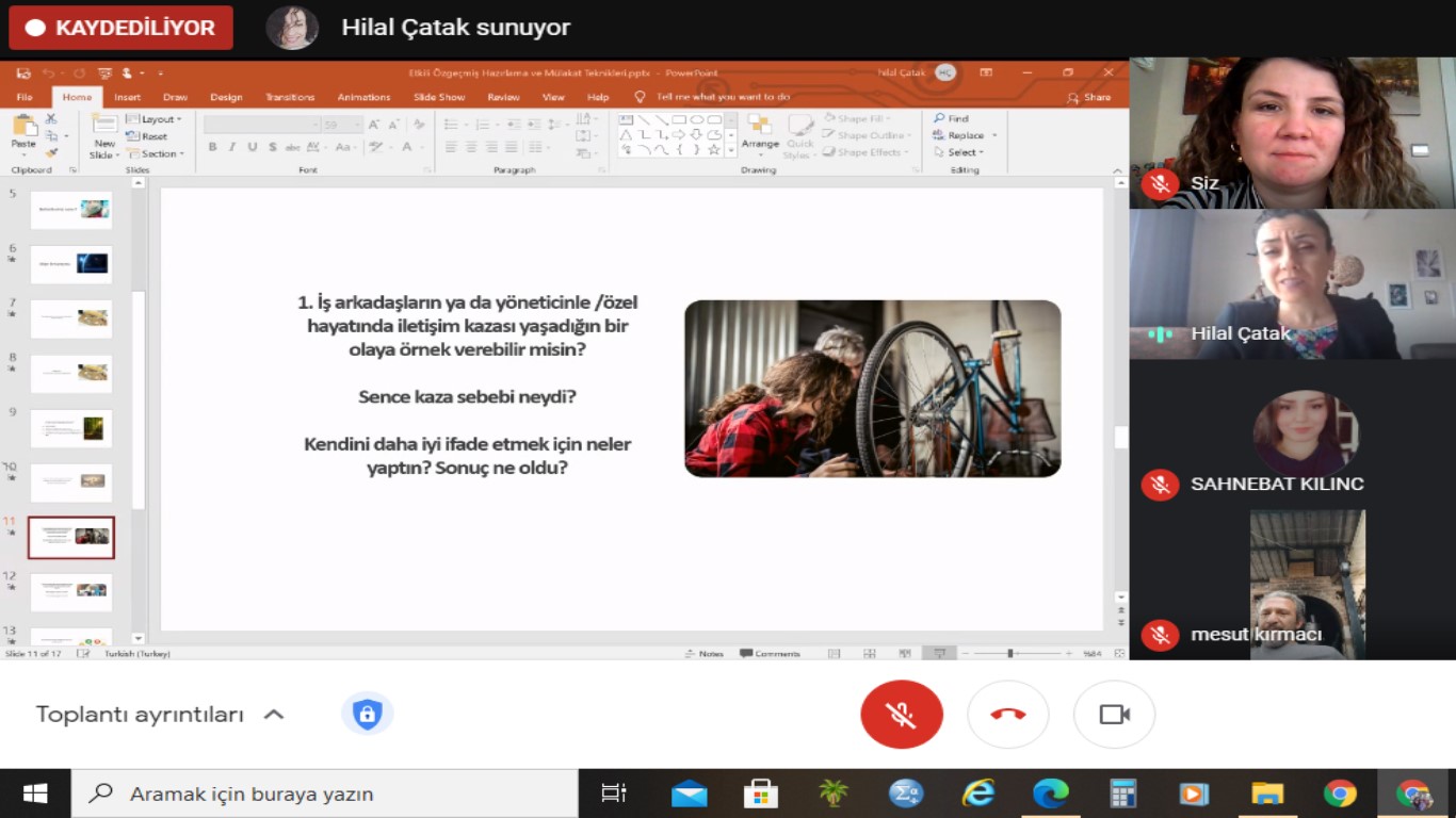 "OKULUMUZDA ONLINE “ETKİLİ ÖZGEÇMİŞ HAZIRLAMA VE MÜLAKAT TEKNİKLERİ” EĞİTİMİ GERÇEKLEŞTİRİLDİ"Eğitime; Okul Müdürümüz Prof. Dr. Mesut KIRMACI ve Müdür Yardımcımız Öğr. Gör. İsmet ANIK BAYSAL ve okulumuz öğrencileri katılmıştır.