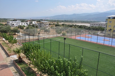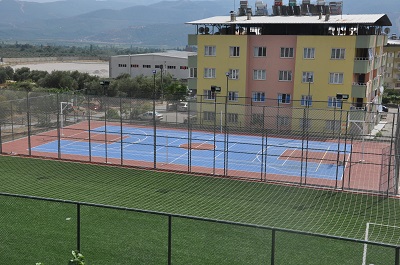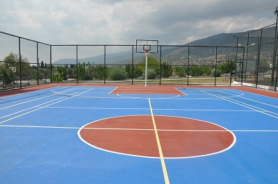 - Basketbol ve voleybol sahası akrilik zemine sahip olup aynı zamanda tenis kortu olabilecek şekilde tasarlanmıştır.