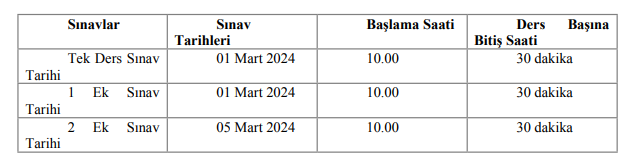 Ortak Dersler, Tek Ders ve Ek Sınavları Aydın Menderes Derslikleri -Merkez Kampüs- AYDIN'da yapılacak olup, sınav bilgileri aşağıdaki tabloda belirtilmiştir.