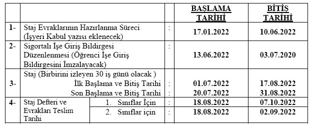 STAJ BAŞVURU VE TAKİP İŞLEMLERİ