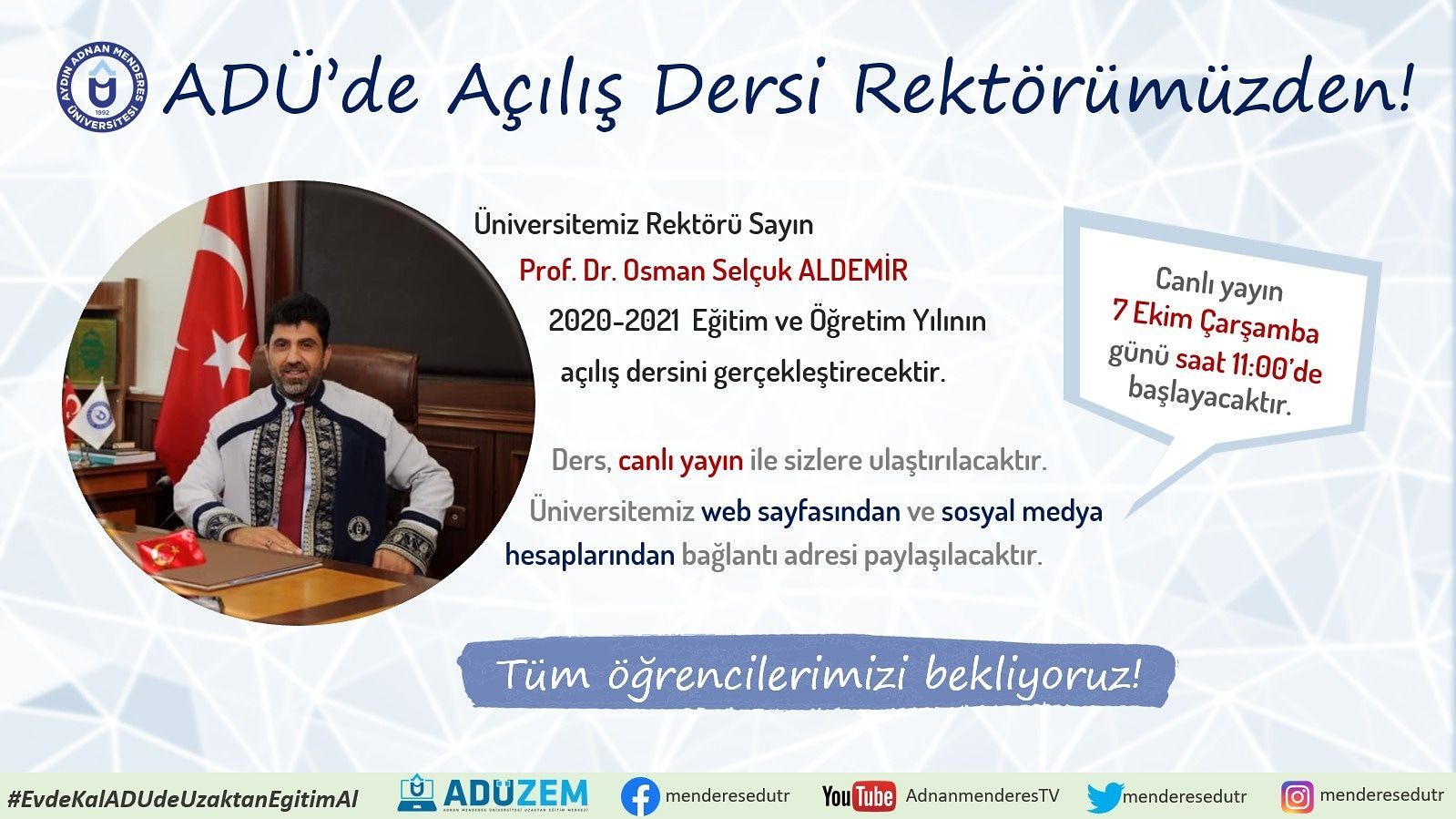 ADÜ' de Açılış Dersi Rektörümüzden