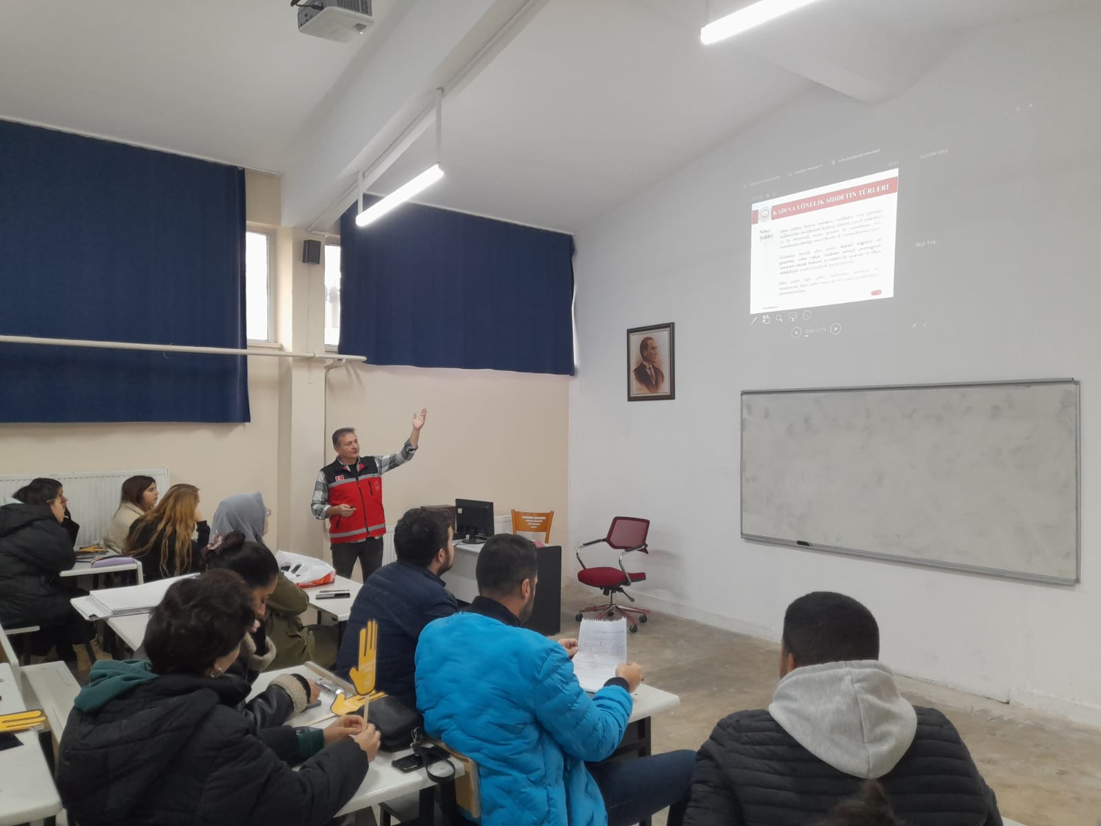 Aydın Adnan Menderes Üniversitesi Çine Meslek Yüksekokulunda 22.11.2023 tarihinde öğrencilerin yoğun katılımı ile Çine Sosyal Hizmet Merkezi Müdürlüğünce “Aile İçi ve Kadına Yönelik Şiddetle Mücadele ve Erken Yaşta Evlilikle Mücadele” eğitimi düzenlenmiştir. Eğitim Çine Sosyal Hizmet Merkezi Müdürlüğünden Gültekin TEKİN’in sunumu ve öğrencilerden gelen sorulara ilişkin açıklamaların ardından sona ermiştir.