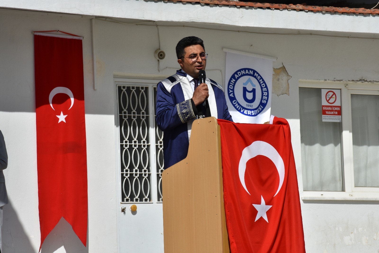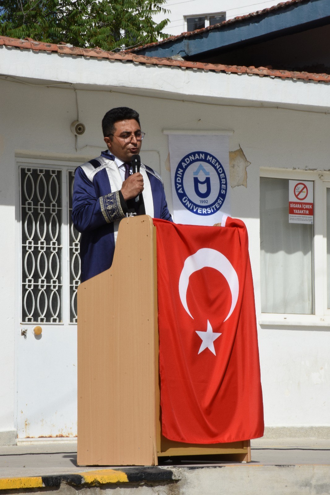 Saygı duruÅŸu ve İstiklal Marşı'nın ardından baÅŸlayan törende açılış konuÅŸmasını Meslek Yüksekokulu Müdürü ÖÄŸr.Gör.Dr. Yakup KARACA, “Çine MeslekYüksekokulu olarak yalnızca mesleki bilgi deÄŸil; aynı zamanda toplumsal sorumluluk bilinciyle donatılmış, üretken ve etik deÄŸerlere baÄŸlı bireyler yetiÅŸtirmeye gayret ettik. Bugün bu emeklerin karşılığını hep birlikte gururla yaşıyoruz,” sözleriyle öÄŸrencilere, ailelerine ve katılımcılara teÅŸekkür etti.