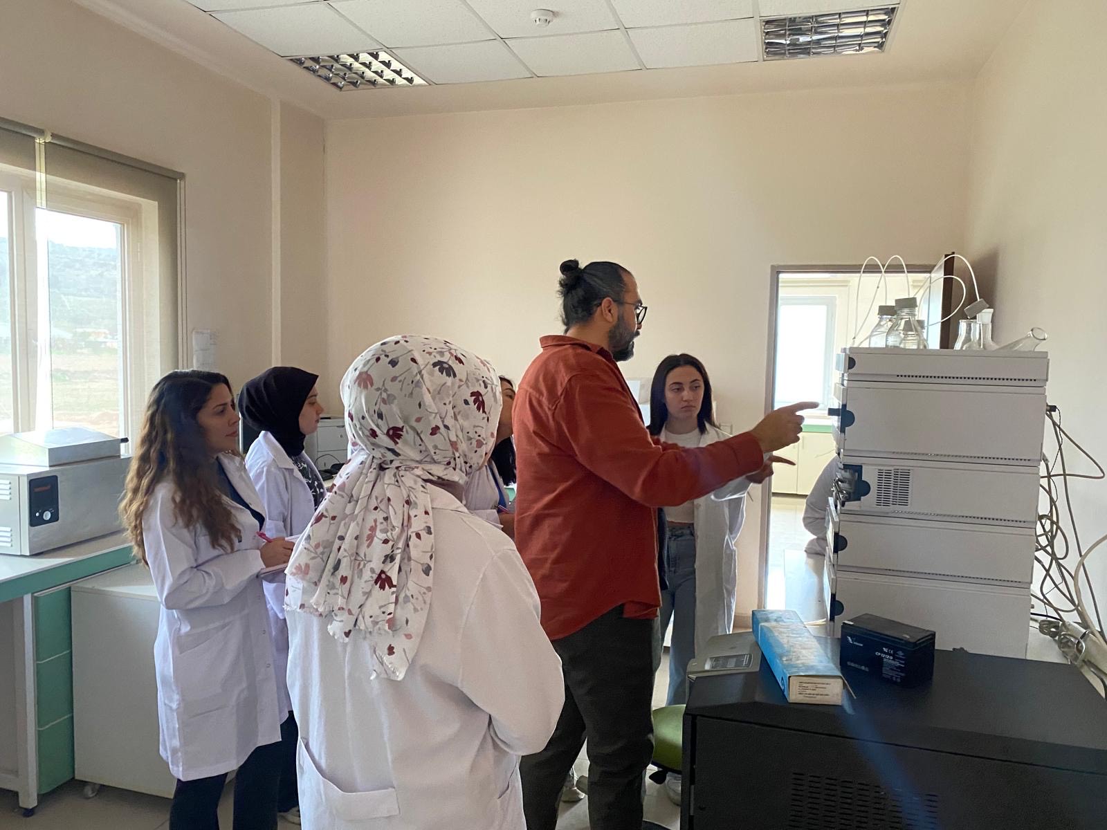 Teknik gezinin ilk durağı olan Tarımsal Biyoteknoloji, Gıda GüvenliÄŸi Uygulama ve AraÅŸtırma Merkezinde, kromatografik analizler, gıda güvenliÄŸi analizleri, mikrobiyolojik testler ve kalite kontrol süreçleri hakkında detaylı bilgiler verildi. Dr. ÖÄŸr. Üyesi Ali Göncü ve ÖÄŸr. Gör. Dr. Adem YavaÅŸ, öÄŸrencileri laboratuvar ortamında gezdirerek burada yürütülen çalışmalar hakkında açıklamalarda bulundu. ÖÄŸrenciler, analiz süreçlerini yakından gözlemleme ve uzmanlardan doÄŸrudan bilgi alma fırsatı yakaladı.