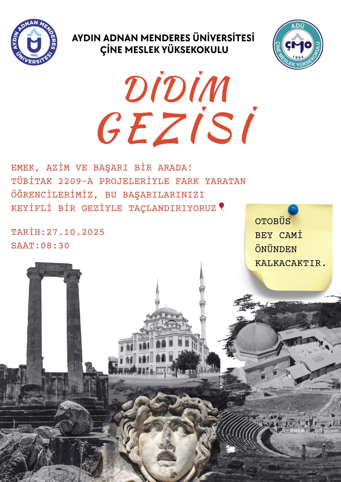 Meslek Yüksekokulumuzda TÜBİTAK 2209-A projeleriyle fark yaratan öğrencilerimize oryantasyon eğitimi kapsamında kültürel gezi gerçekleştirilecektir.