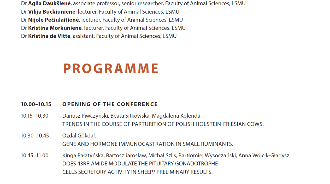 Öğretim Üyelerimizden Prof.Dr. Özdal Gökdal, Litvanya Kaunas'ta bulunan Lithuanian University of Health Science tarafından düzenlenen “2ND INTERNATIONAL SCIENTIFIC CONFERENCE, Livestock Production: Recent Trends and Future Prospects” isimli konferansa, Faculty of Animal Science dekanı Prof.Dr.Rolandas Stankevicius'un daveti ile “Davetli Konuşmacı” olarak katıldı.