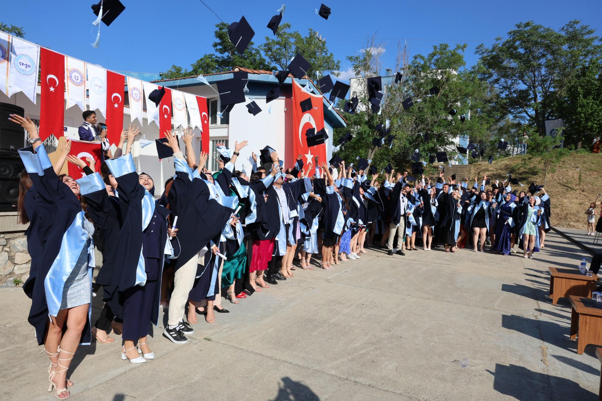Tören, toplu fotoÄŸraf çekimi ve öÄŸrencilerin kep atma seremonisi ile sona erdi.