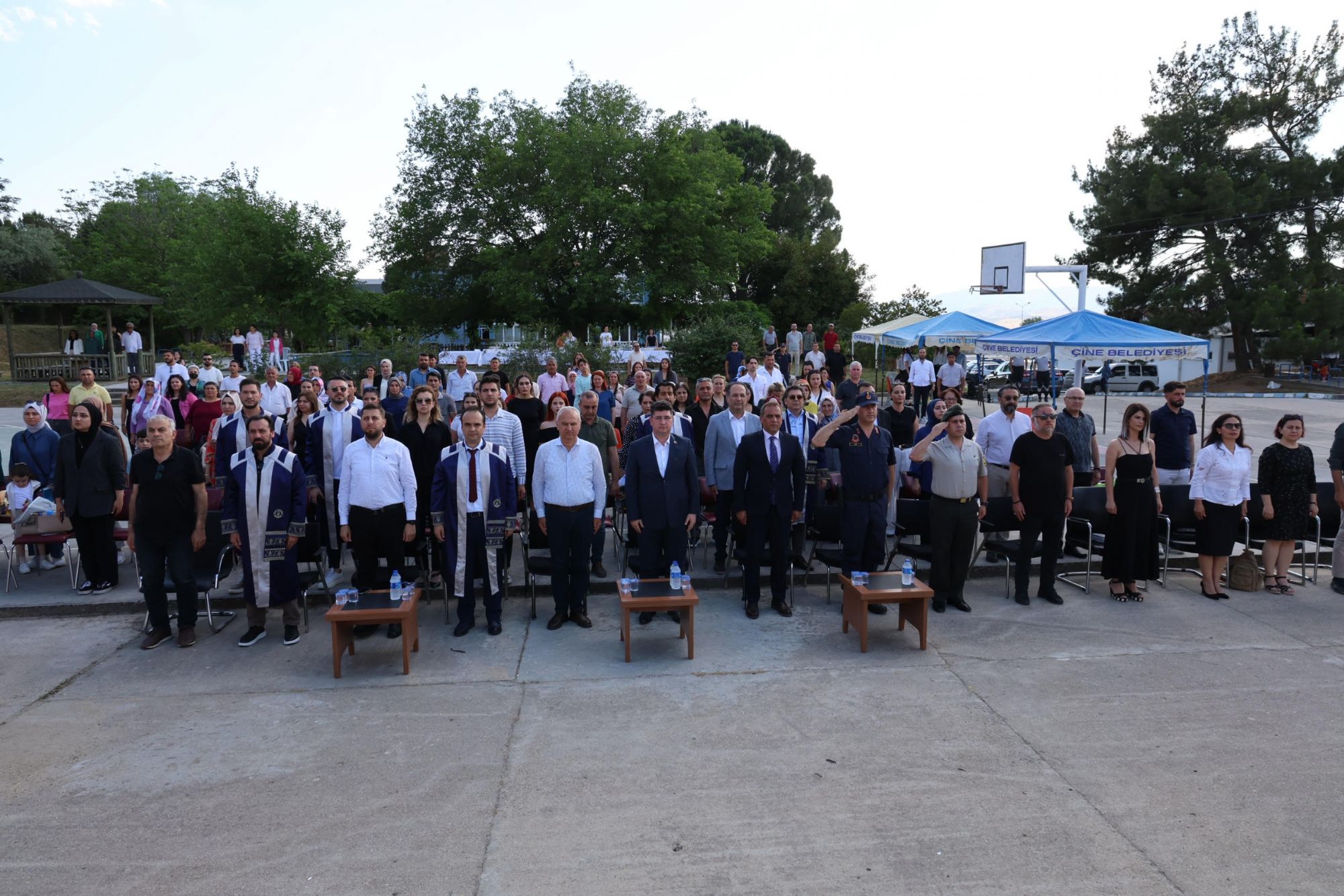 Çine MYO birincisi Necla Çelik'in konuÅŸmasının ardından Çine Kaymakamı Murat Büyükköse tarafından kendisine plaketi takdim edildi. Programlarda dereceye giren öÄŸrencilere baÅŸarı belgelerinin verilmesinin ardından mezun olan tüm öÄŸrencilere mezuniyet belgeleri takdim edildi.