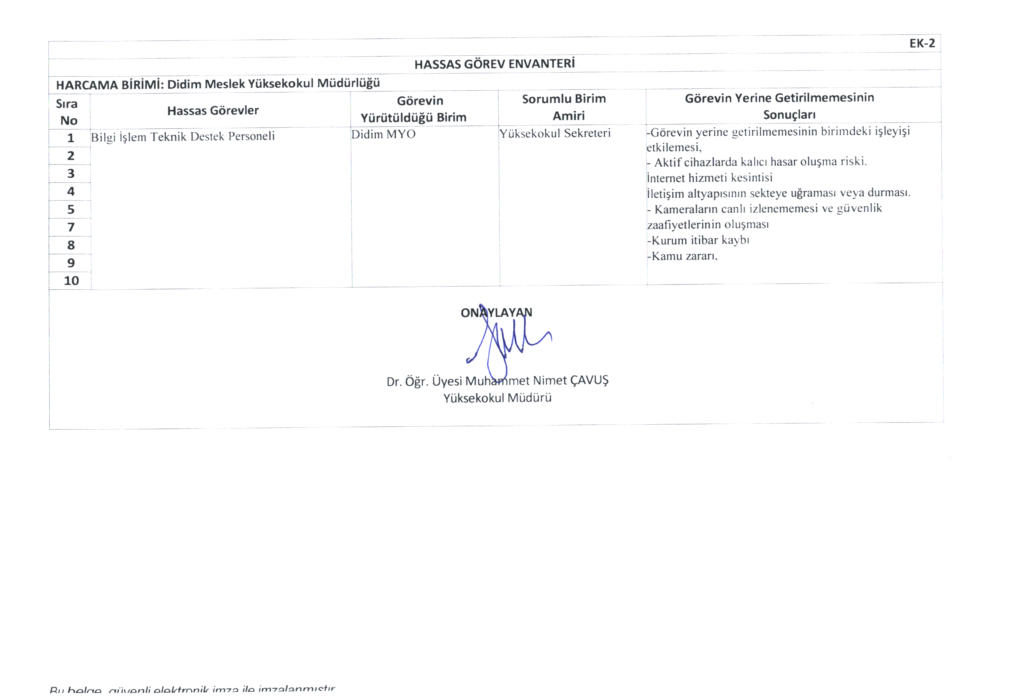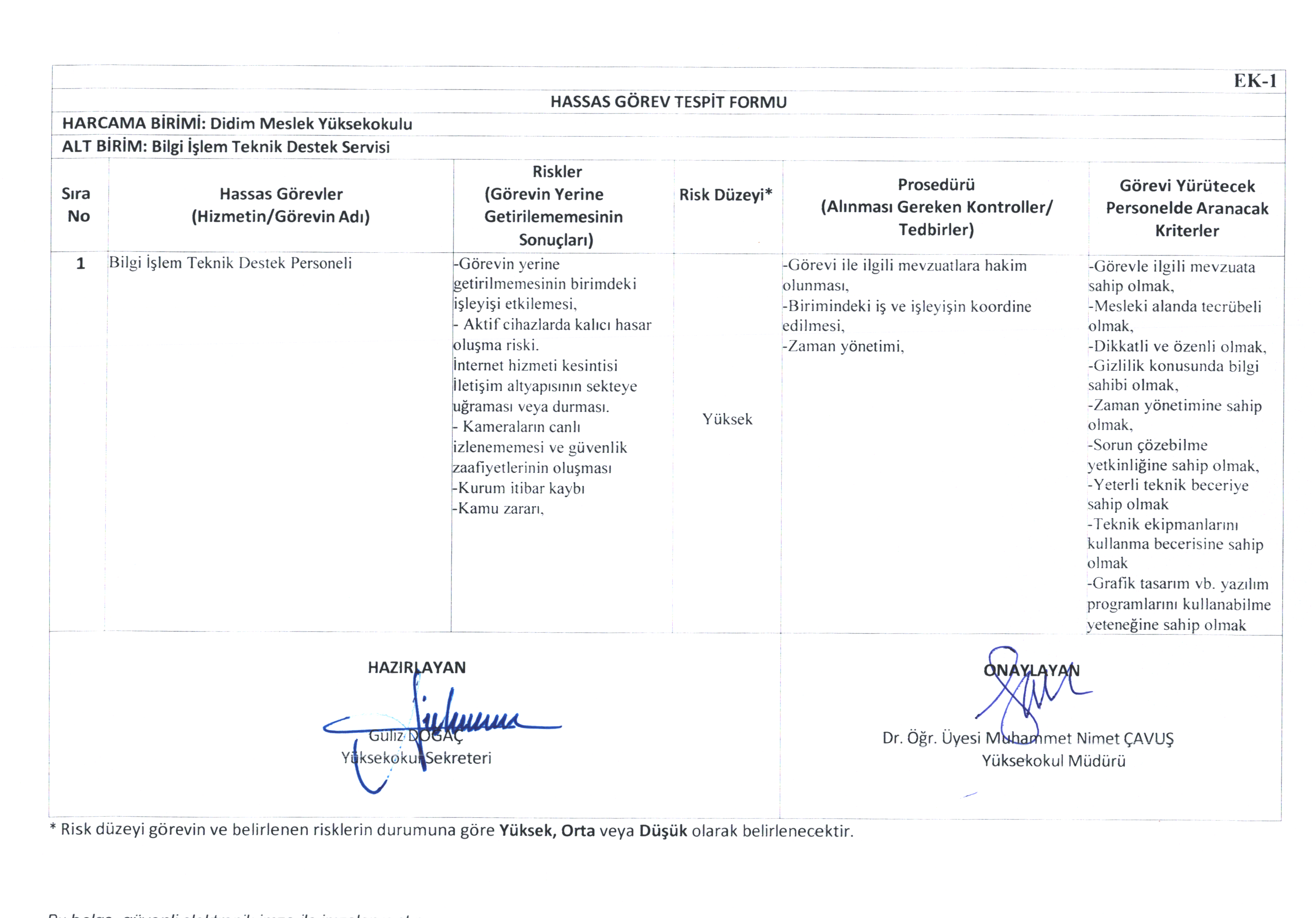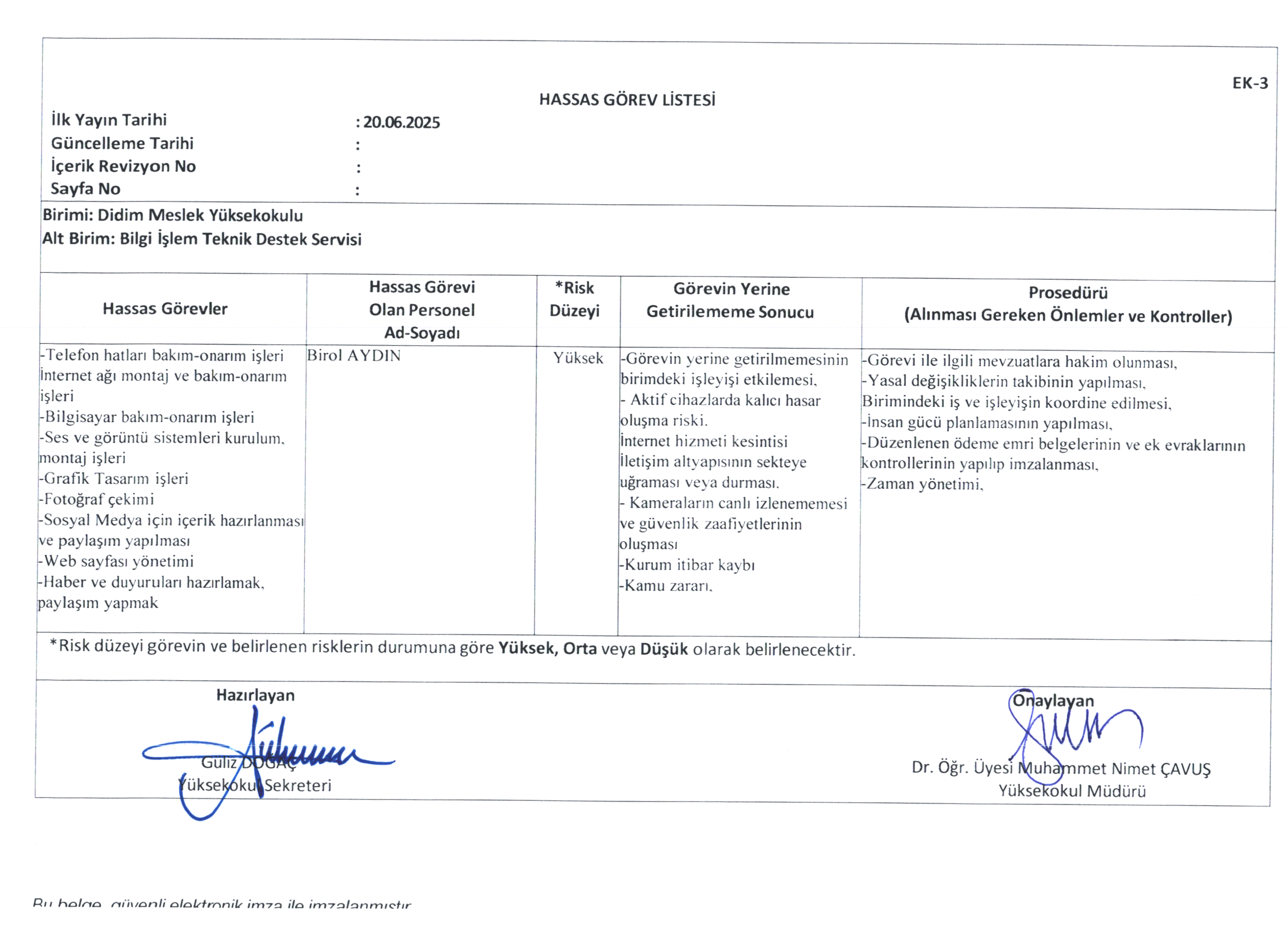 Risk Kontrol Eylem Planı