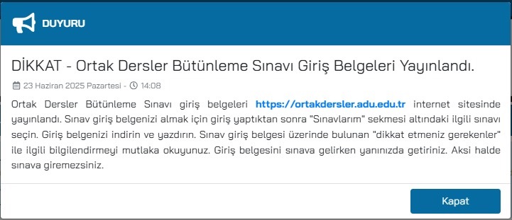 Bütünleme hakkı olan öğrenciler 20 Haziran 2025 tarihine kadar OBİS sisteminden başvuru yapabilirler.