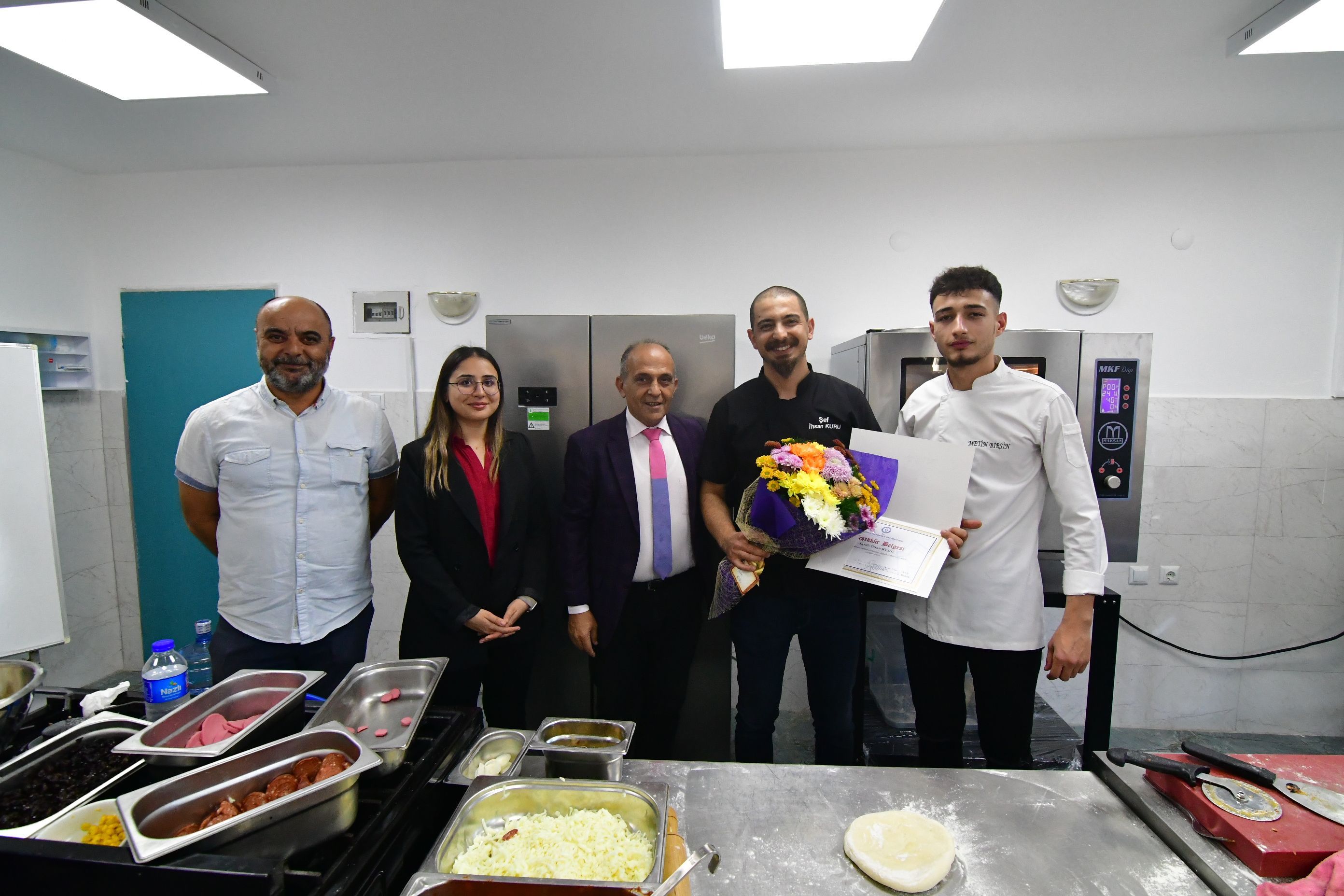 Eğitimin ardından Yüksekokulumuz Müdürü Öğr. Gör. Dr. M. Nimet Çavuş, Şef İhsan Kuru’ya teşekkür belgesi ve çiçek takdim etti.