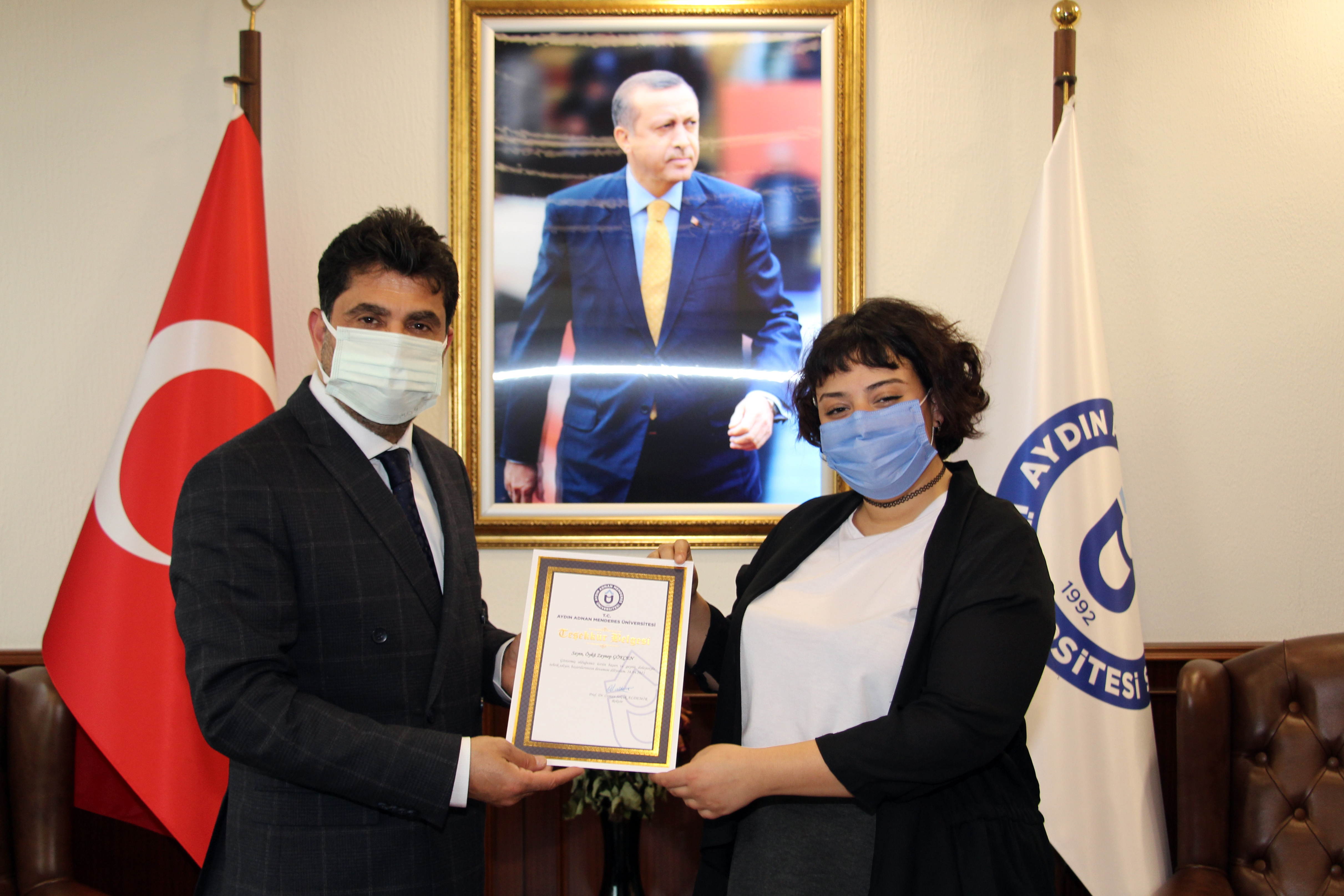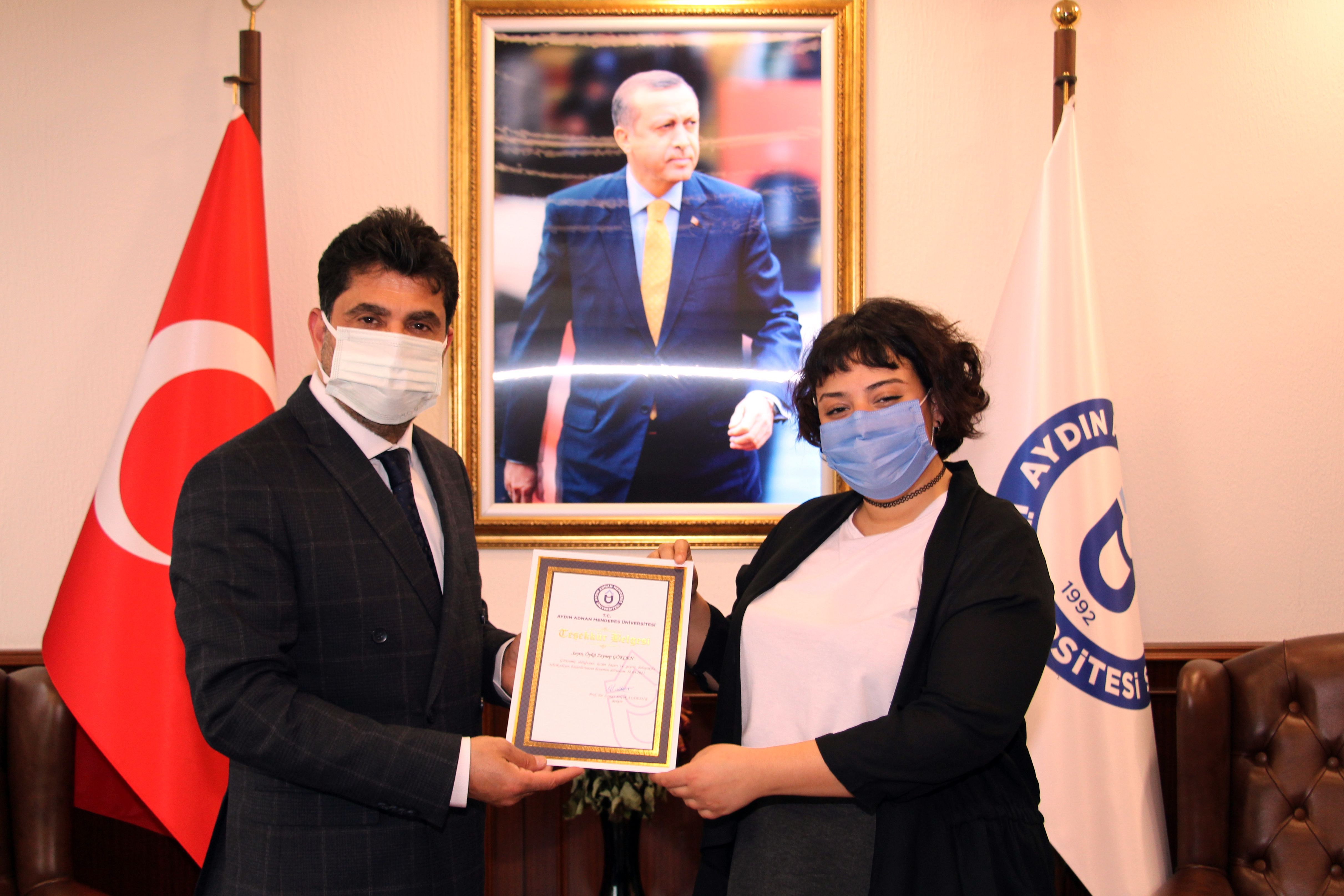 Ziyaret, Üniversitemiz Rektörü Prof. Dr. Osman Selçuk Aldemir’in Didim MYO öğrencisi Öykü Zeynep Gökçen’e hediye ve teşekkür belgesi vermesinin ardından sona erdi.