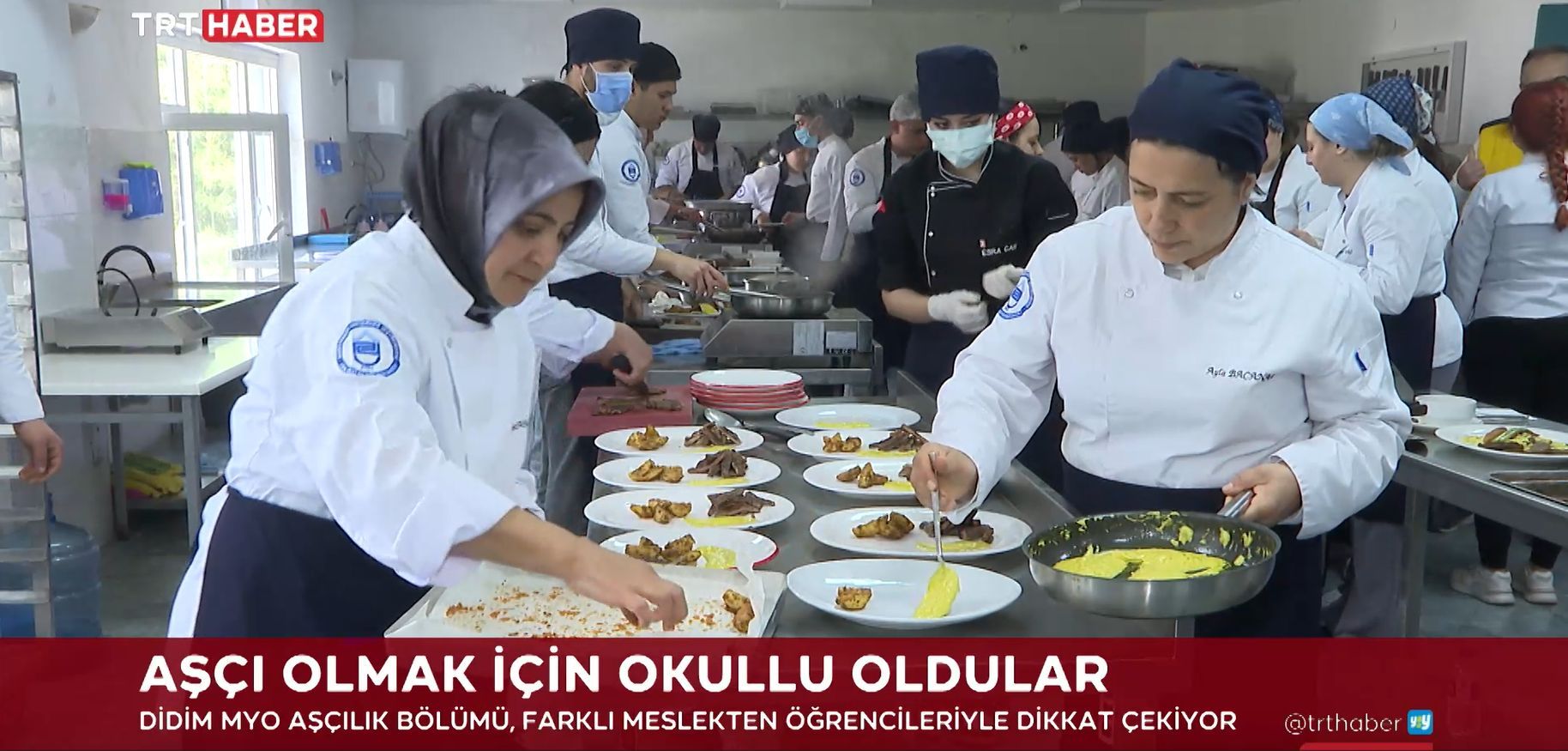 Didim Meslek Yüksekokulu Aşçılık Programının, hem bölgenin gastronomi potansiyeli hem de sunduğu nitelikli eğitimle, farklı yaş ve meslek gruplarından bireylerin ilgi odağı olmaya devam ettiğini belirten MYO Müdürü Dr. Öğr. Üyesi Muhammet Nimet Çavuş, “Öğrenciler mutfakta gösterdikleri azimle yeteneklerini kanıtladılar. Gastronomi çok ileri bir meslek burada. Dolayısıyla meslek yüksekokulumuzun da konumu itibariyle öğrenciler tarafından en çok ilgi gören bölümü aşçılık.” dedi.