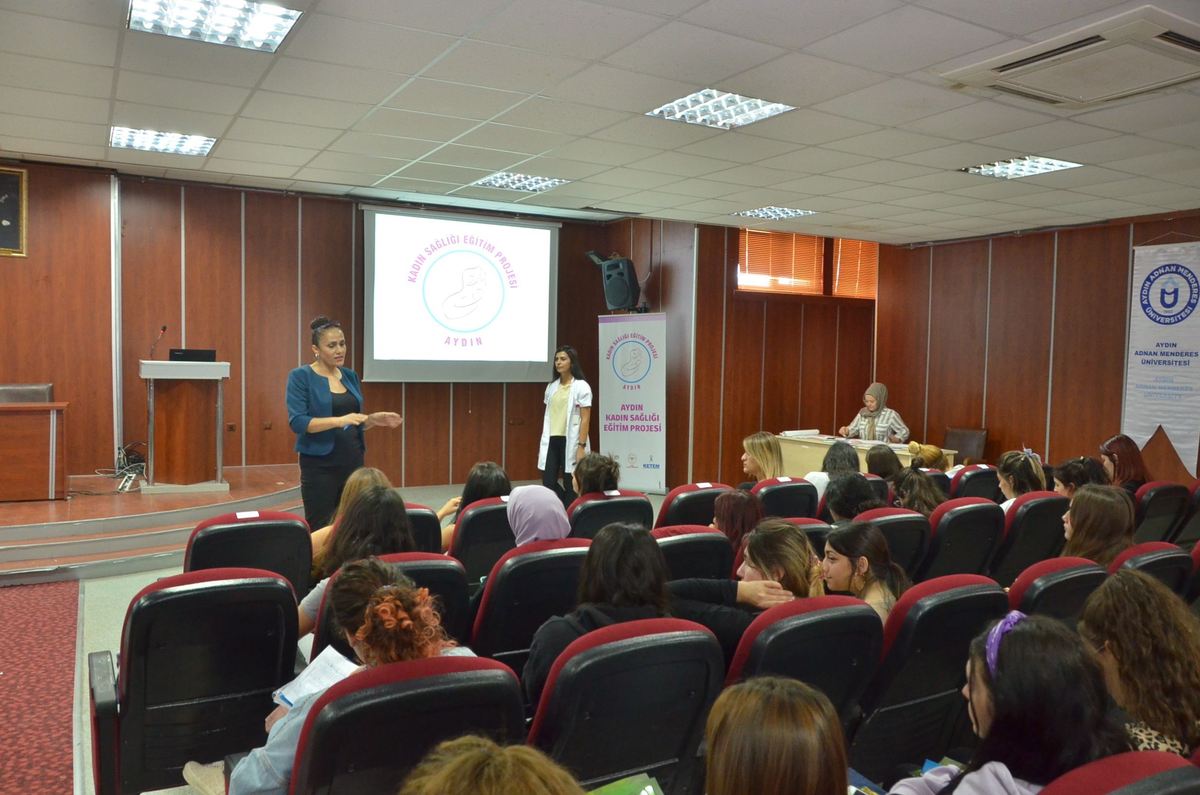 Yüksekokulumuz Konferans Salonu'nda 25 Ekim 2022 tarihinde gerçekleÅŸen etkinlikte, Didim İlçe SaÄŸlık MüdürlüÄŸü doktorları tarafından meme kanseri, rahim aÄŸzı kanseri, kalın bağırsak kanserleri, kadın üreme saÄŸlığı, cinsel yolla bulaÅŸan hastalıklar, normal doÄŸum ve anne sütü, menopoz, saÄŸlıklı beslenme, fiziksel aktivitenin önemi, obeziteden korunma ve diyabet, organ bağışının önemi, kadına yönelik ÅŸiddet, sigara, uyuÅŸturucu ve teknoloji bağımlılığının zararları konularında bilgilendirme yapıldı.