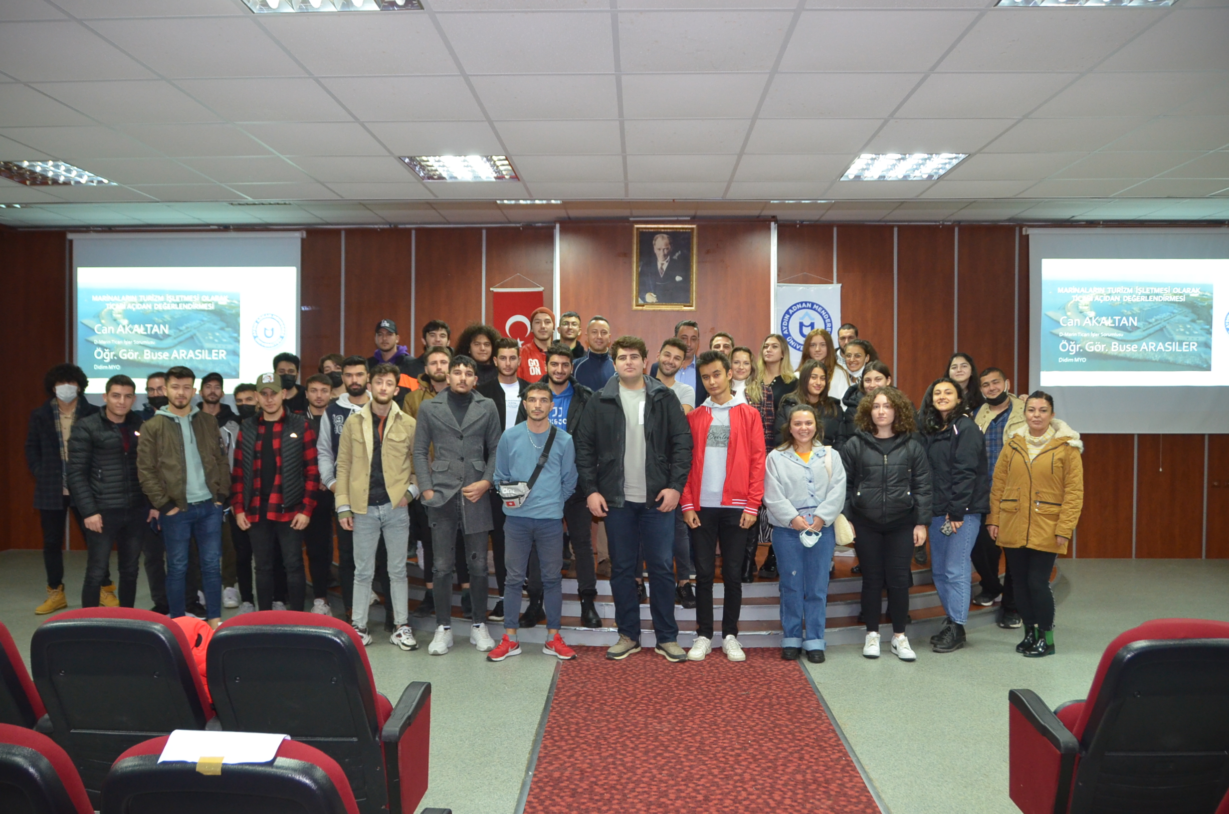 Yatçılık ve Marina İşletmeciliği dersi kapsamında gerçekleşen söyleşiye, D-Marin Ticari İşler Sorumlusu Can Akaltan, Didim MYO Müdürü Öğr. Gör. Evrim Kamacı, akademik personel ve öğrenciler katıldı.
