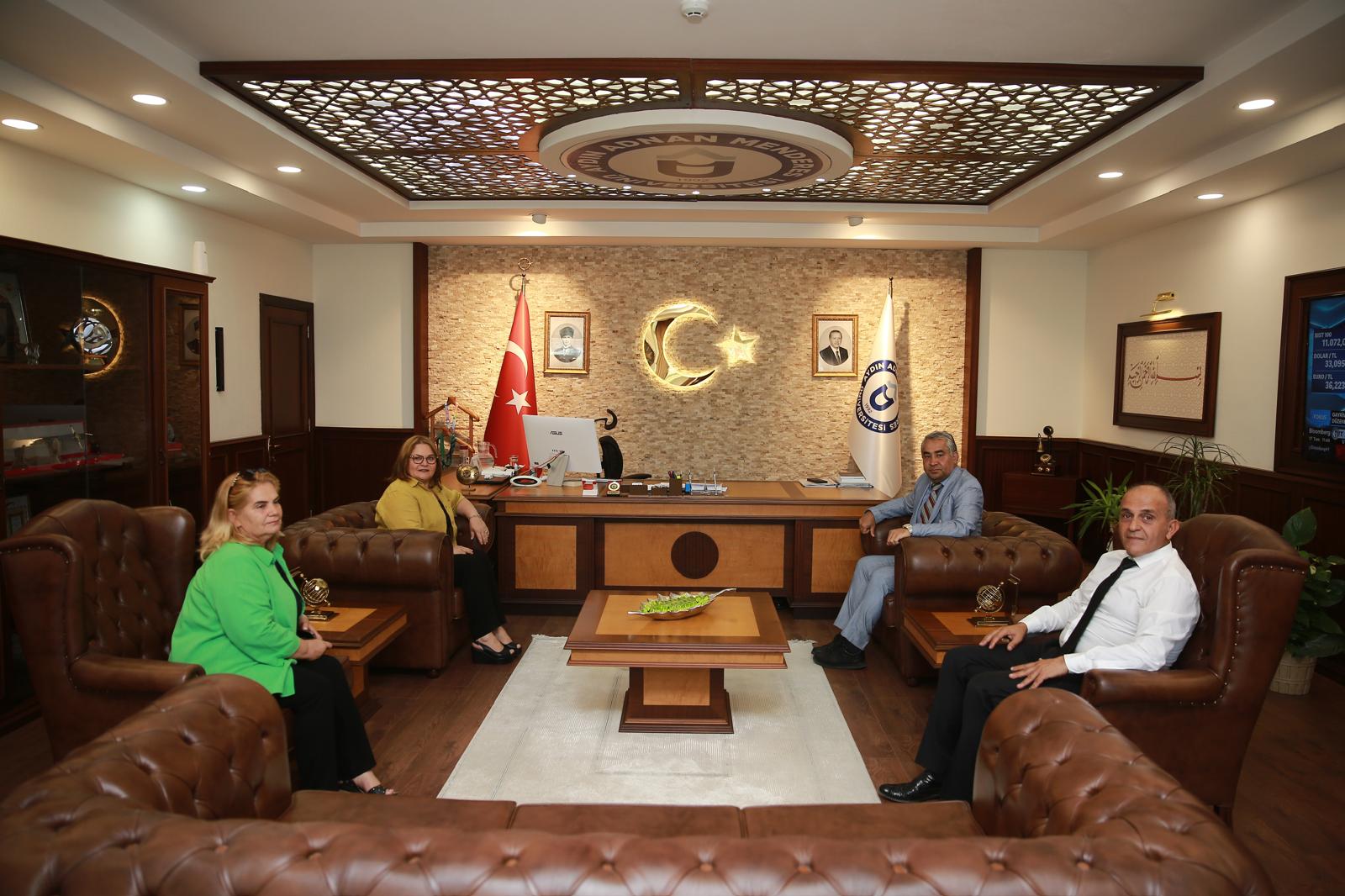 Didim Belediye BaÅŸkanı Hatice Gençay ve Didim Meslek Yüksekokulu Müdürü ÖÄŸr. Gör. Dr. Muhammet Nimet ÇavuÅŸ, Üniversitemiz Rektörü Prof. Dr. Bülent Kent’i makamında ziyaret etti.
