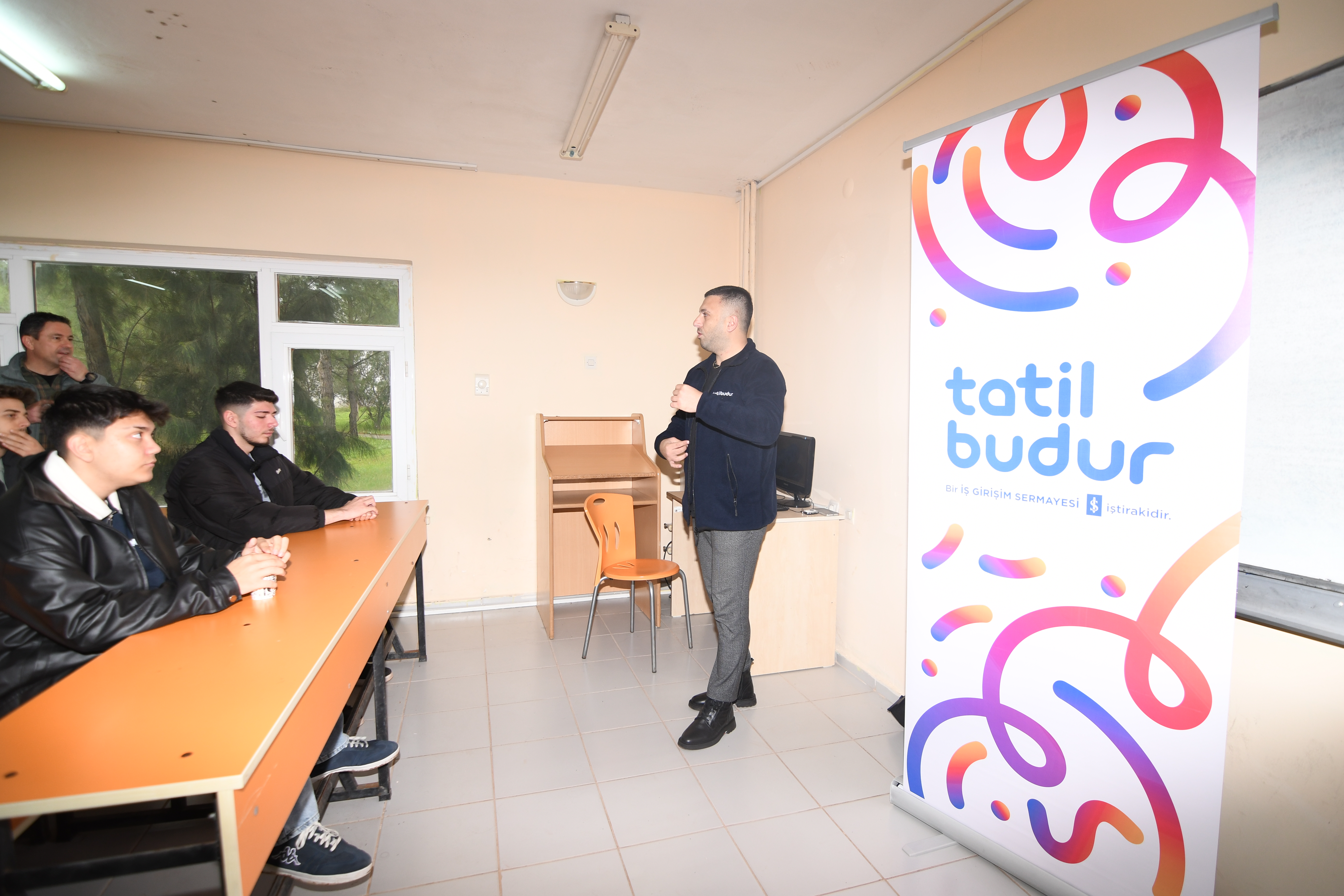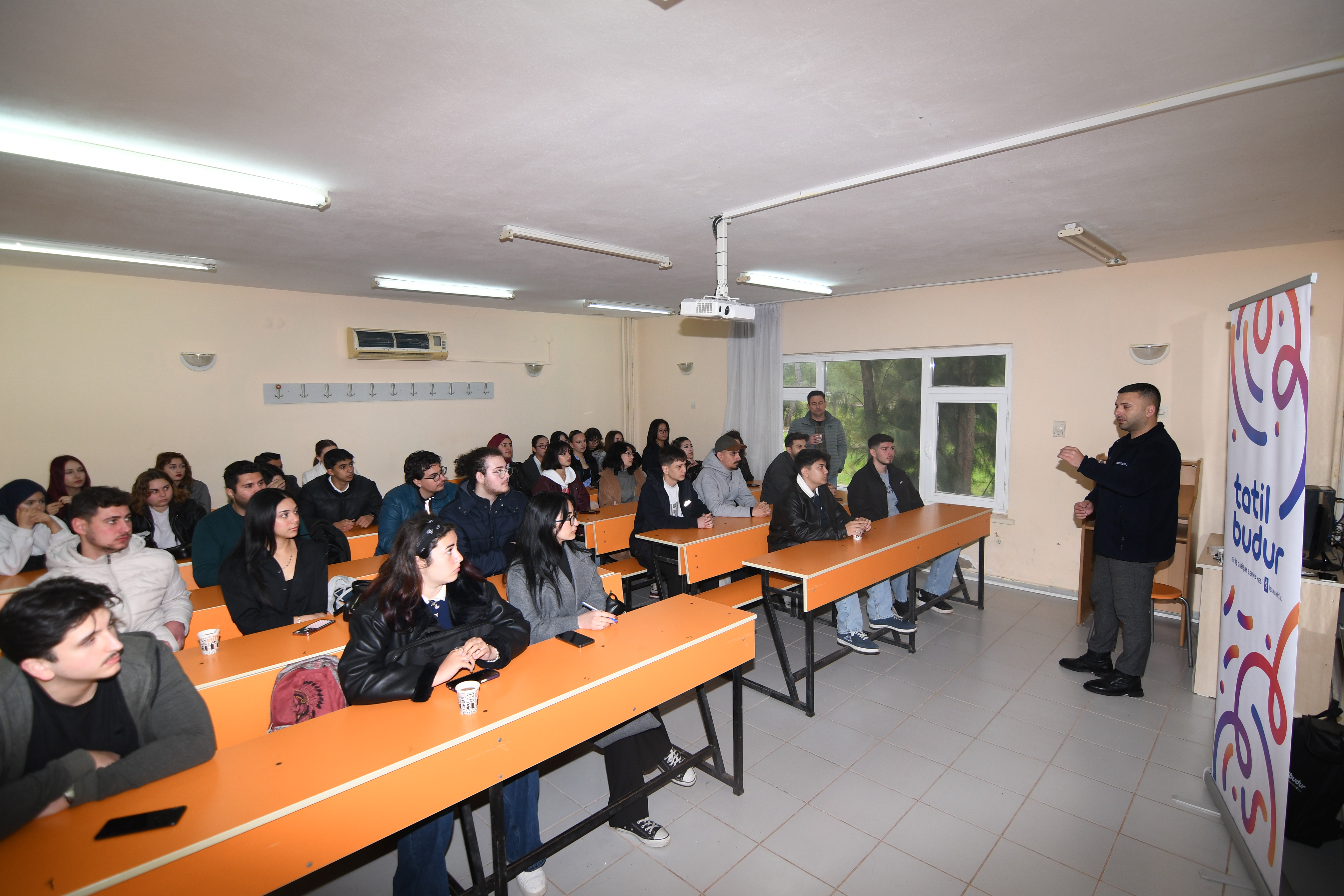 Tatilbudur Bölge Hizmetleri Sorunlusu Murat KayaoÄŸlu, öÄŸrencilere sektörel deneyimlerini aktararak turizm alanında kariyer planlaması, iÅŸ baÅŸvuru süreçleri ve sektörde aranan nitelikler hakkında önemli deÄŸerlendirmelerde bulundu. Program sonunda öÄŸrenciler, firma temsilcilerine sorularını yöneltme ve birebir görüÅŸme imkânı buldu.