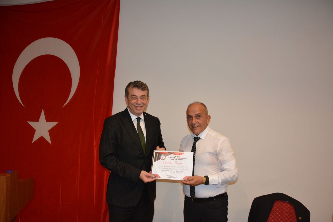 Seminer sonunda AYOSEB BaÅŸkanı Muhammet Ali Künkcü, ÖÄŸr. Gör. Dr. M. Nimet ÇavuÅŸ’a teÅŸekkür belgesi takdim etti.