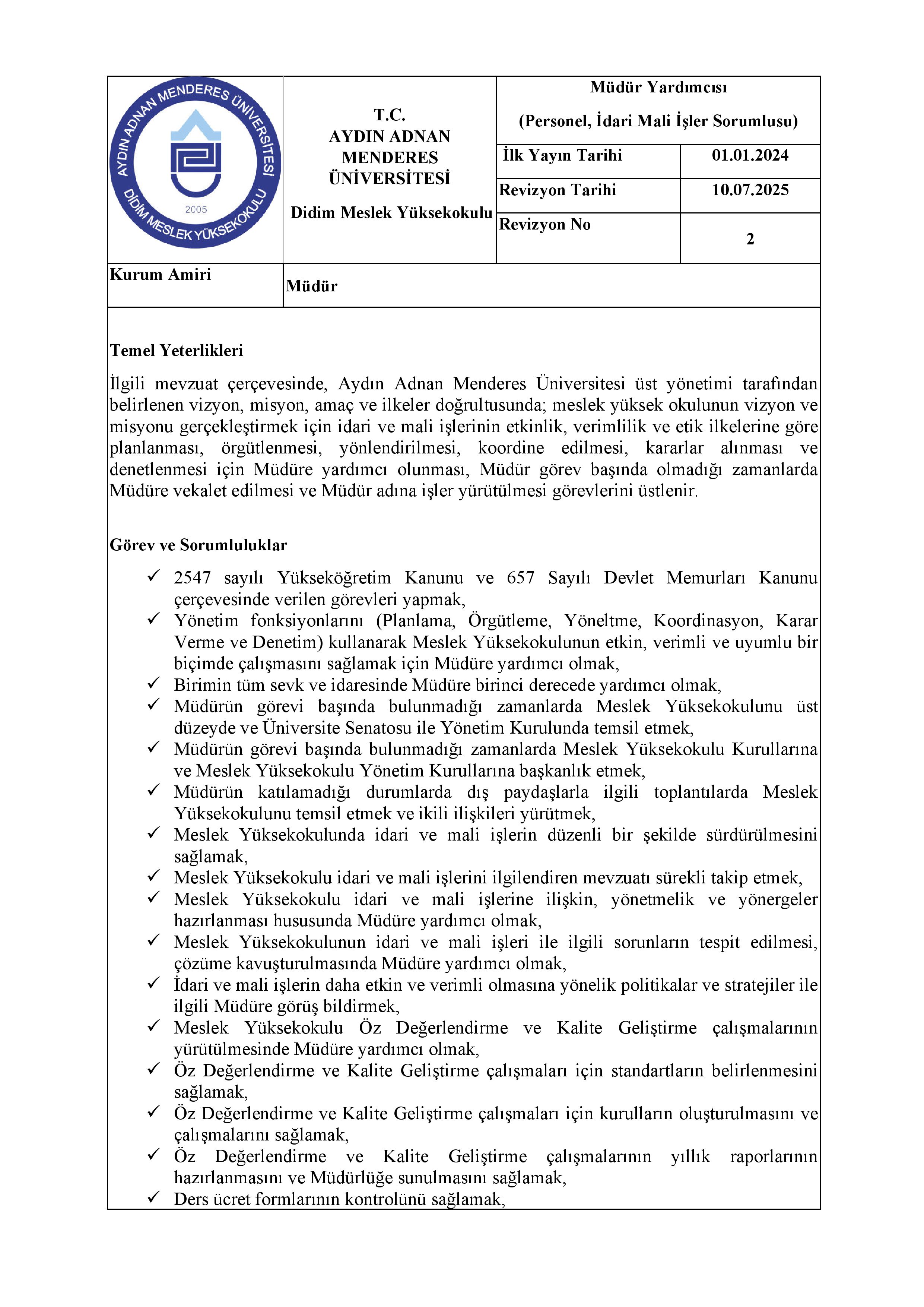 Müdür Yardımcısı (Personel-İdari Mali İşler)