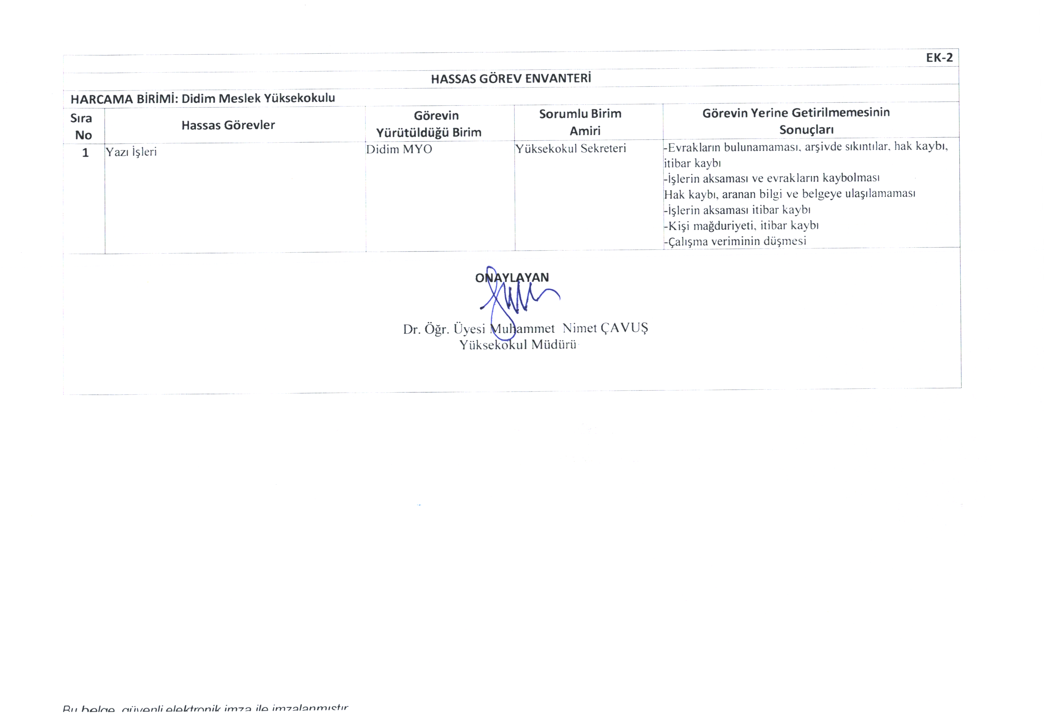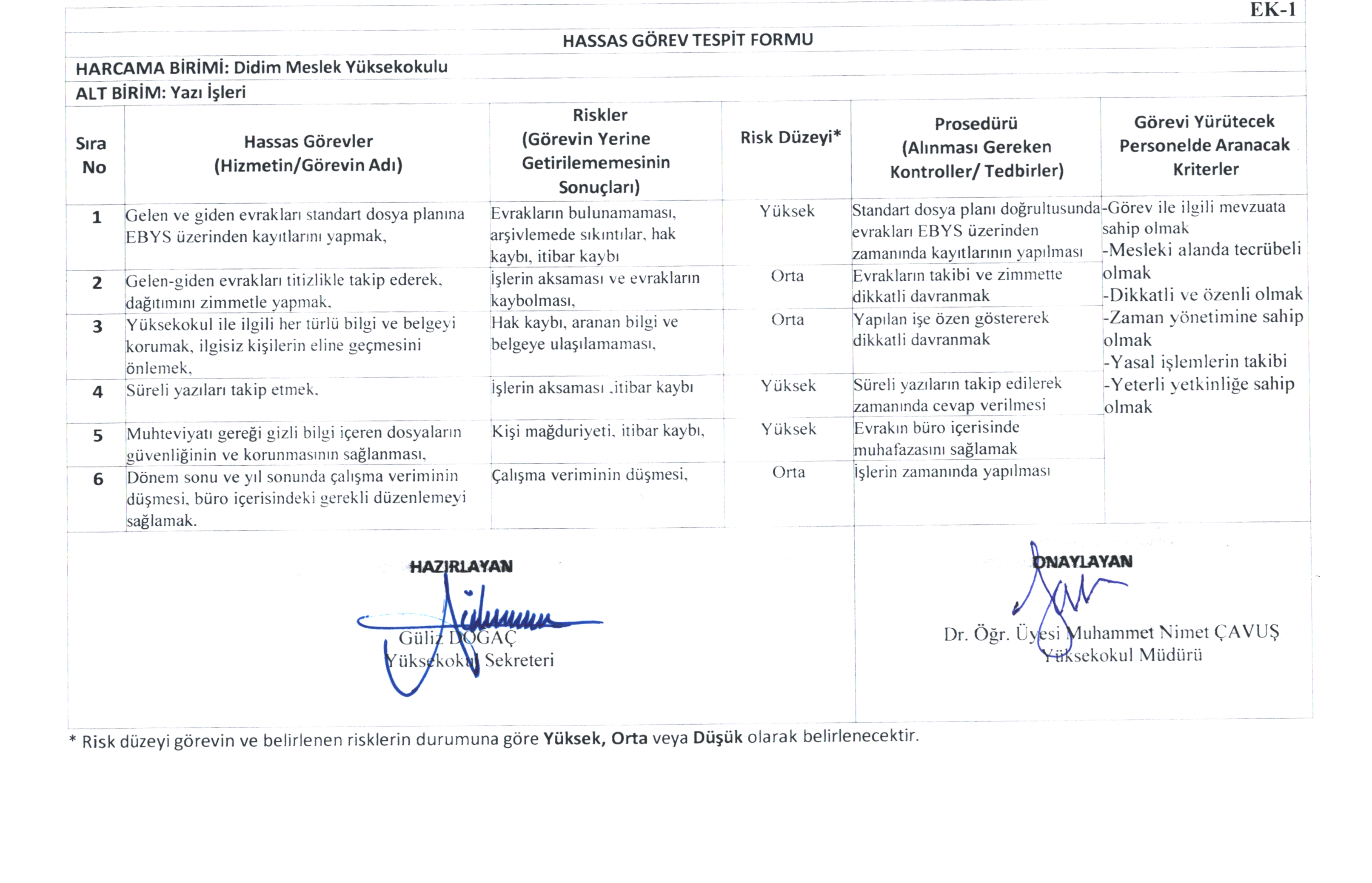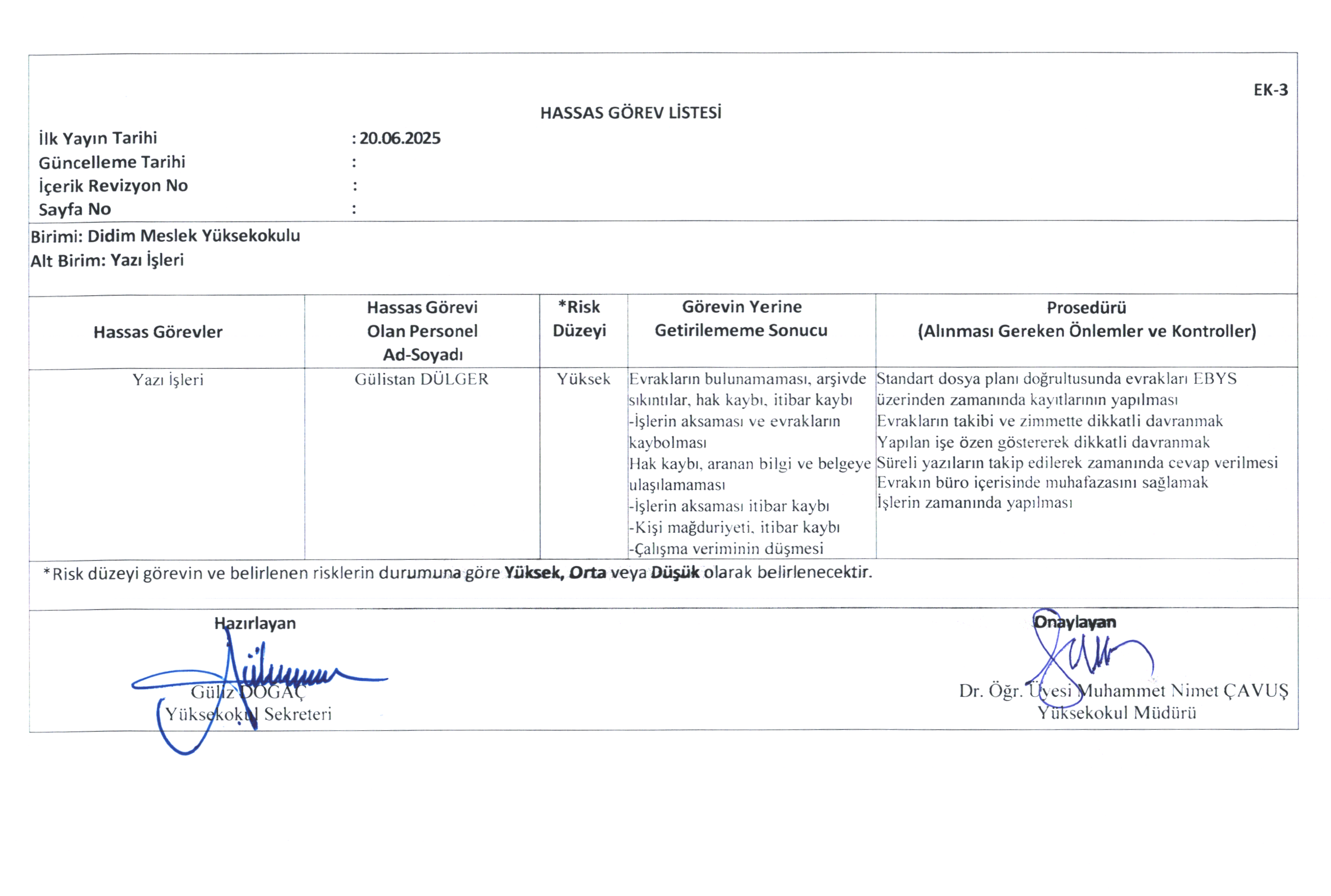 Risk Kontrol Eylem Planı