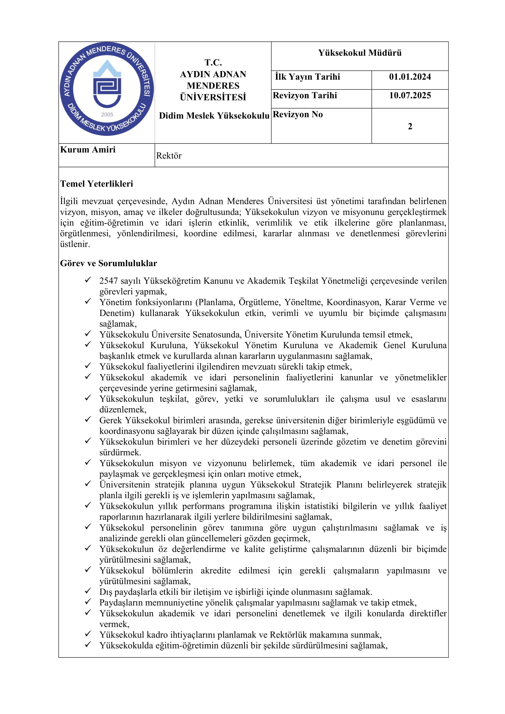 Yüksekokul Müdürü