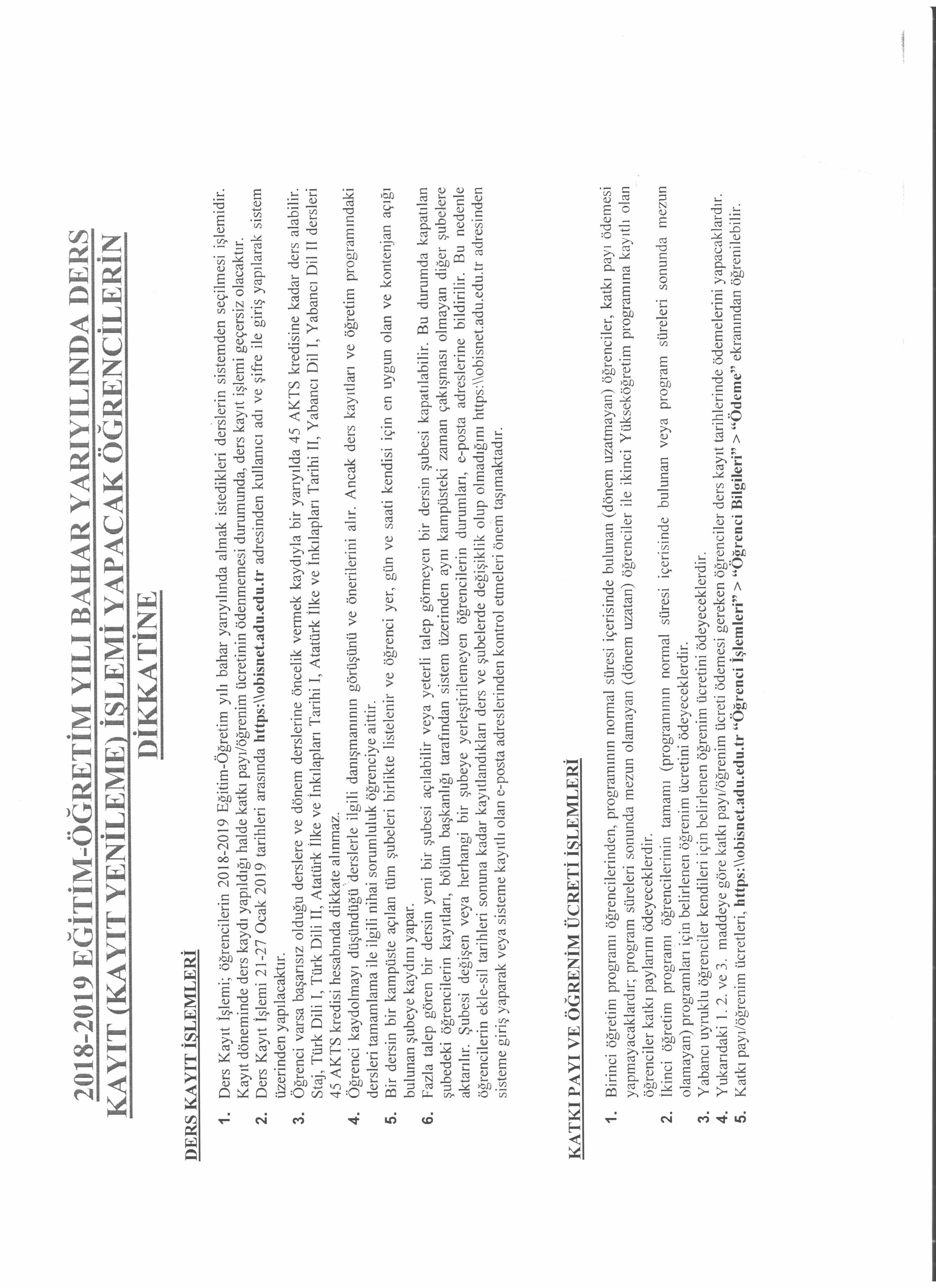 2. sınıf Öğrencileri ise 23.01.2019 tarihinde ders kaydı yapacaktır.