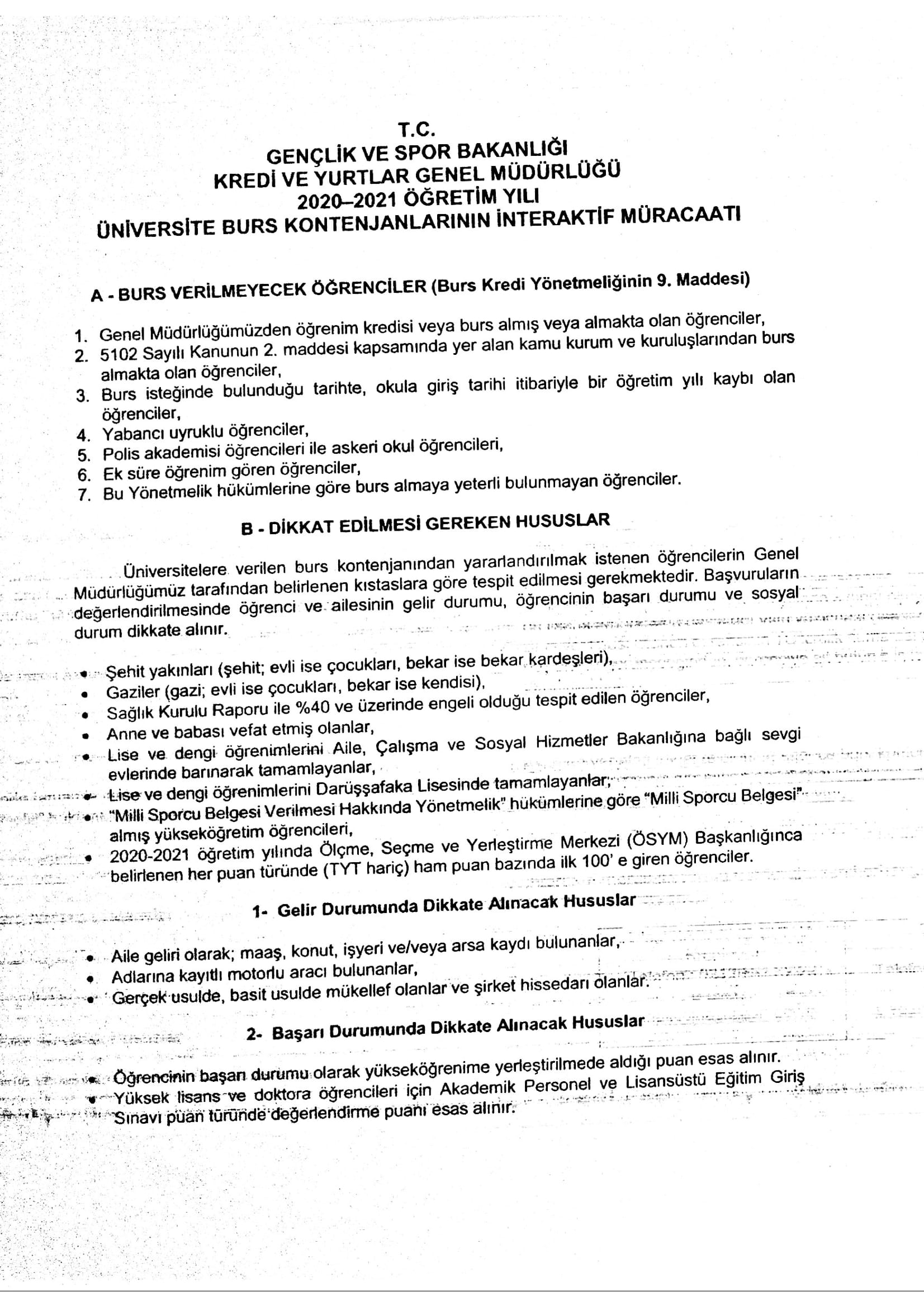 Başvuruda Bulunabilecek Öğrencilerin Dikkatine.....