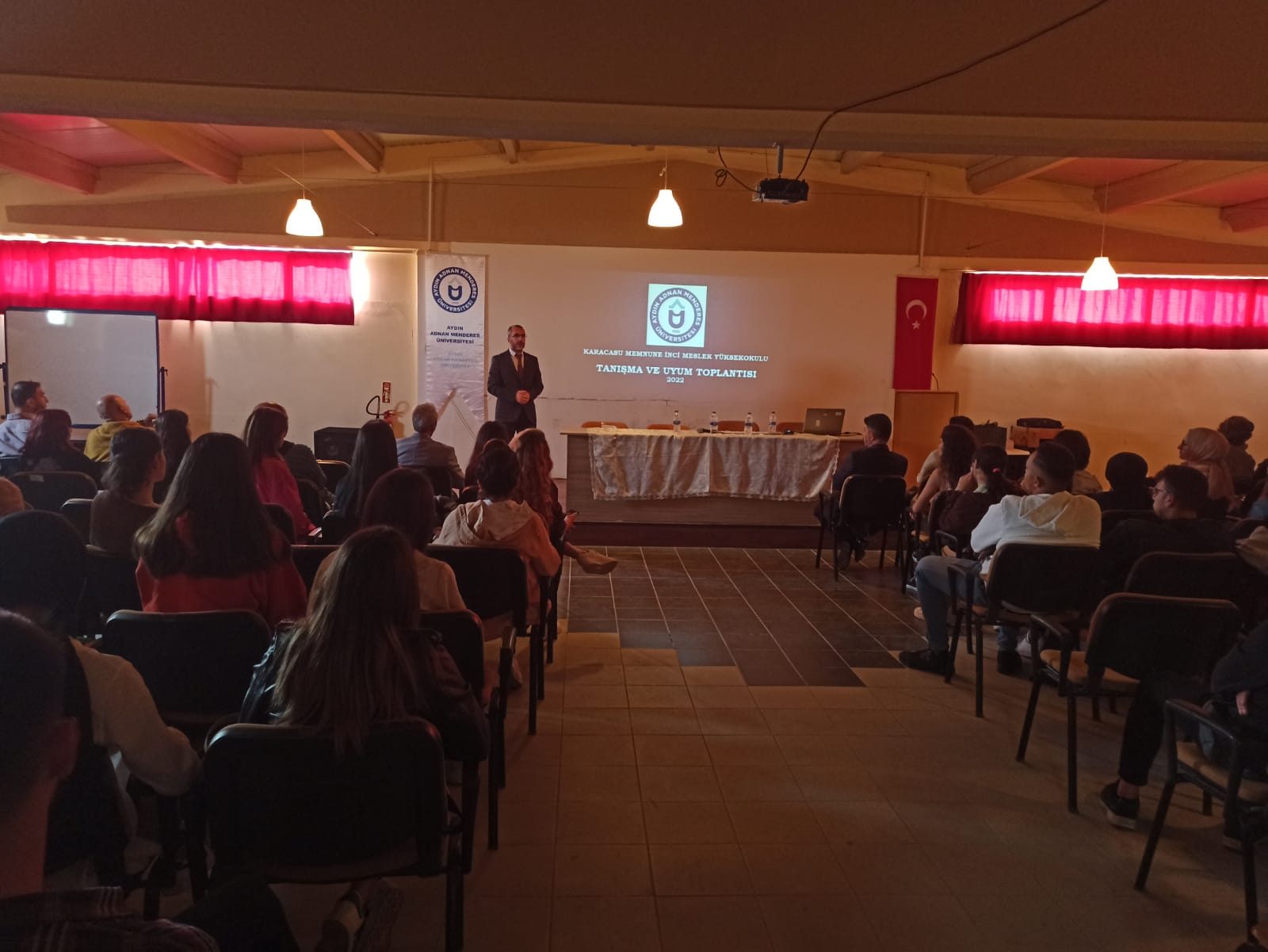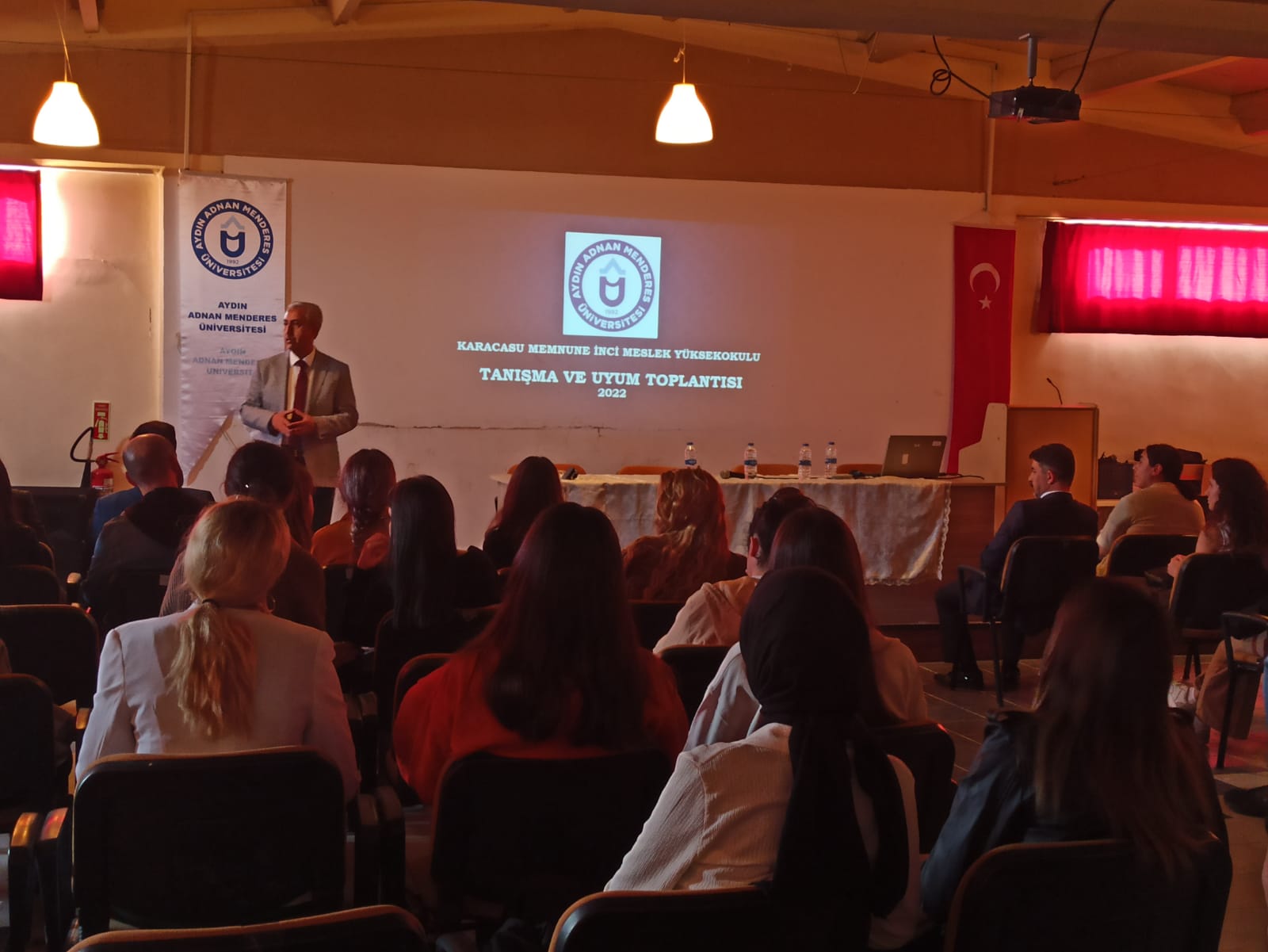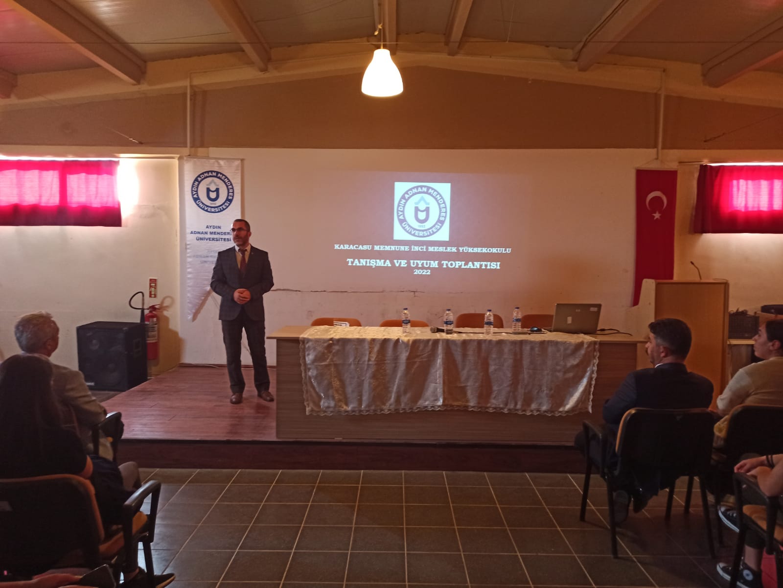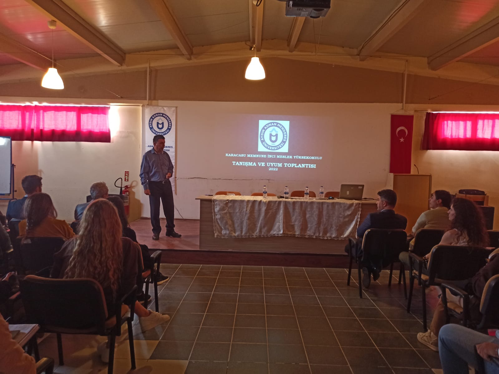 Toplantının ikinci oturumuna Üniversite Sağlık Kültür ve Spor Daire Başkanı Faruk Uludağlı, Spor Şube Sorumlusu Özcan Taş, İnsan Kaynakları Birim Personeli Burak Polat, Psikolojik Danışma ve Rehberlik Uygulama ve Araştırma Merkezi’nden Uzman Klinik Psikolog Fatma Evrim Güreşen, Aydın Merkez İŞKUR İş Kulübü liderlerinden Gül Yıldız ve Mehmet Tüylüce, Karacasu İlçe Müftüsü Bayram Yılmaz ve Karacasu İlçe Halk Eğitim Müdürü Nadir Kanbak eşlik ettiler ve kurumları hakkında öğrencileri bilgilendirdiler. Oryantasyon eğitimi, öğrencilerin sorularının cevaplanması ile son buldu ve öğrencilere başarılı bir yıl geçirmeleri temennilerinde bulunuldu.
