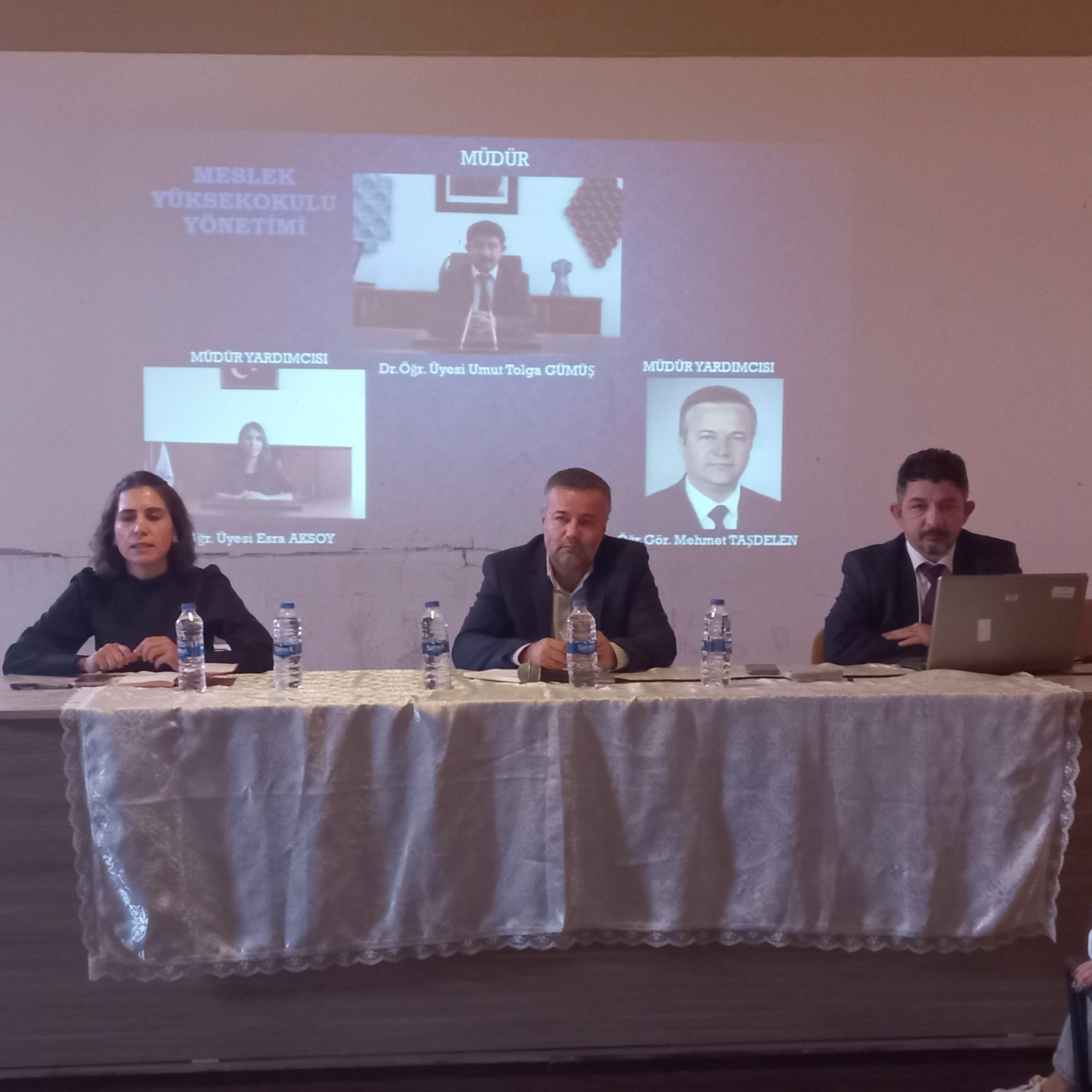 Açılış konuşmasında üniversitenin ve yüksekokulun tanıtımı, misyonu ve vizyonu ve olanakları anlatıldı. Müdür Gümüş’ün açılış konuşmasını müdür yardımcıları Dr.Öğr.Üyesi Esra Aksoy ve Öğr.Gör. Mehmet Taşdelen’in Yüksekokul’un önlisans programları ve eğitim-öğretimin genel işleyişi hakkında konuşmaları takip etti.