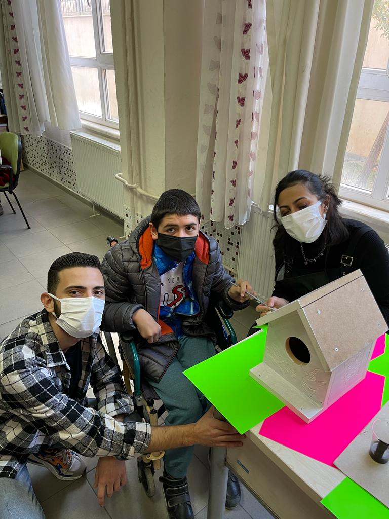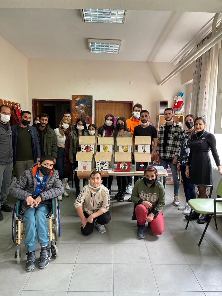 3 Aralık Dünya Engelliler Günü kapsamında Karacasu Memnune İnci Meslek Yüksekokulu ve İlçe Milli Eğitimi Müdürlüğü iş birliği ile Öğr. Gör. Servet AKAR'ın öncülüğünde üniversitemiz öğrencilerinin hazırlamış olduğu ahşap kuş yuvaları Karacasu Şehitleri Ortaokulu'nda özel eğitim sınıfında bulunan öğrencilerle birlikte boyanarak "Engelimiz Yok" düşüncesiyle birliktelik duygusunu paylaşmak amacıyla biraraya geldiler.