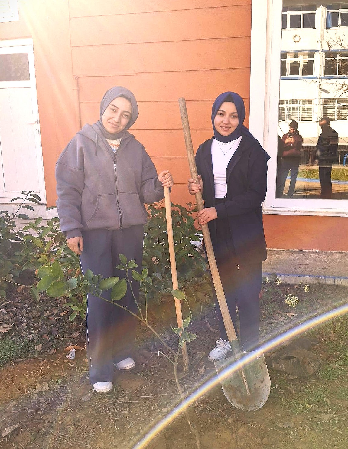 Yüksekokulumuzda güncel konularda farkındalık yaratma faaliyetlerine hız verildi. Gönüllülük Çalışmaları Dersi kapsamında Dr. Öğr. Üyesi Hüseyin Önlem ERSÖZ’ün öncülüğünde yüksekokul öğrencileri tarafından iki faaliyet gerçekleştirildi. Bu çalışmalardan ilkini Yüksekokul öğrencilerinden Sude AKSU ve Zeynep Nur ÇETİN üstlendi. “Fidan Hayat Verir” adlı çalışmalarıyla bu vatan için canlarını feda eden şehitlerimizi ve erken yaşta hayattan kopartılan çocuklarımızı anmak için Yüksekokul bahçesine iki adet limon fidanın dikimini yaptılar. Öğrenciler proje hakkında düşüncelerini etkinliğe katılanlarla paylaştılar.