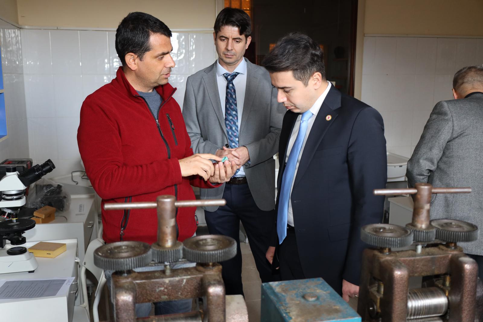 Ziyarette Yüksekokul Müdürümüz Doç. Dr. Niyazi KÜÇÜK, ÖÄŸr. Gör. Mehmet TAÅžDELEN ve ÖÄŸr. Gör. Halil İbrahim ÇAKIR okul ve atölye çalışma alanlarını gezerek yapılmış ve yapılacak olan çalışmalar hakkında bilgi verdiler.