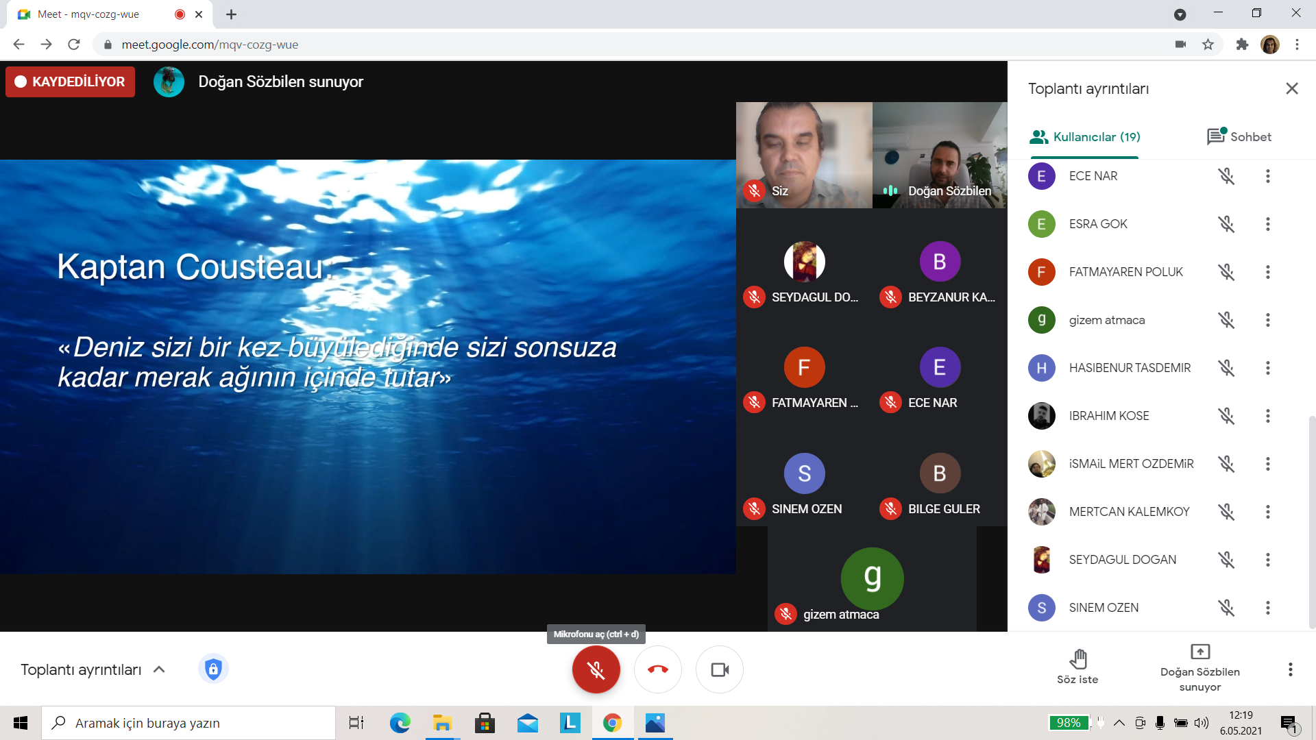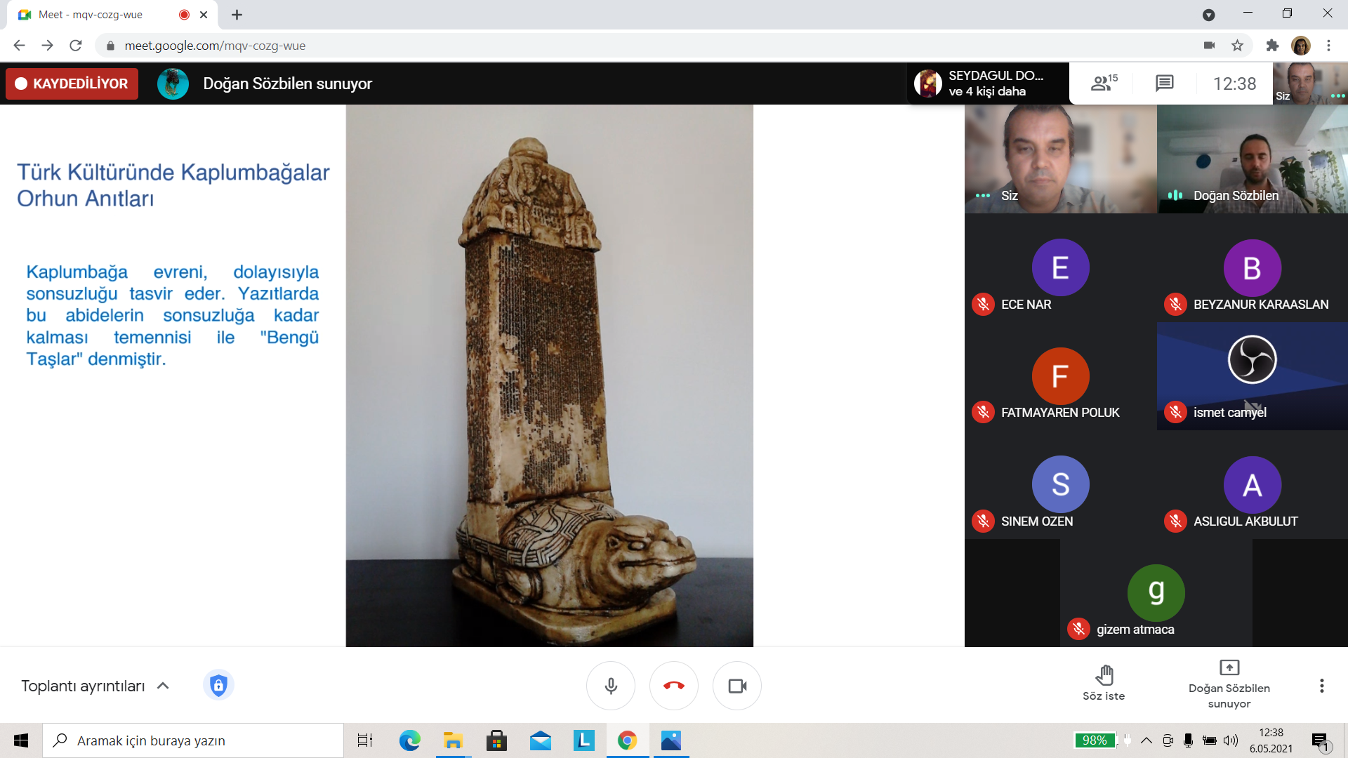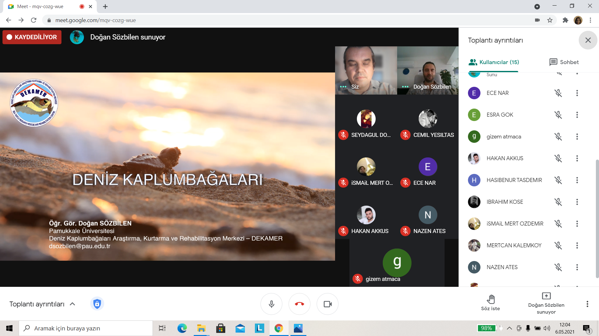 Karacasu Memnune İnci MYO kariyer etkinliklerinden birini daha gerçekleÅŸtirdi. Bu kapsamda 06 Mayıs 2021 tarihinde “Deniz KaplumbaÄŸaları ve Medeniyetimiz” adlı seminer çevrimiçi olarak gerçekleÅŸtirildi. Dr.ÖÄŸr.Üyesi H. Önlem Ersöz’ün moderatörlüÄŸünü söyleyiÅŸe Yüksekokul’un çeÅŸitli programlarında okuyan öÄŸrenciler katıldı. Seminere Pamukkale Üniversitesi’nde öÄŸretim görevlisi olan ve aynı zamanda MuÄŸla Dalyan’da 2008 yılında kurulan DEKAMER (Deniz KaplumbaÄŸaları AraÅŸtırma Kurtarma ve Rehabilitasyon Merkezi)’de gönüllü deniz biyoloÄŸu olarak çalışan DoÄŸan SÖZBİLEN konuÅŸmacı olarak katıldı. ÖÄŸr.Gör. DoÄŸan SÖZBİLEN sunumunu yaptığı seminerin ilk bölümünde DEKAMER’in tarihini, kuruluÅŸ amacını (yaralı deniz kaplumbaÄŸalarının kurtarılması, tedavilerini, beslenmelerini ve bakımları) ve projeleri öÄŸrencilere aktardı. İkinci bölümde deniz kaplumbaÄŸalarının dünya medeniyetlerine yansımalarını farklı kültürlerden ( Hint mitolojisi, Avustralya yerlileri, Antik Yunan ve Mısır) verdiÄŸi örneklerle açıkladı. Türk kültüründe özellikle Orhun Anıtları’nda kaplumbaÄŸa tasvirlerine de yer verildiÄŸini ve bu anıtların “bengütaÅŸ” olarak “evren ve sonsuzluk” anlamında antik kültürümüze yer ettiÄŸini söyledi. Üçüncü bölümde deniz kaplumbaÄŸalarının ekosisteme ve turizme katkıları öÄŸrencilere aktarıldı. DoÄŸaya saygımızın kaybolmasının dinozorlar çağından önce de var olan deniz kaplumbaÄŸalarının yaÅŸamasını zorlaÅŸtırdığı özellikle vurgulandı. Türkiye’de deniz kaplumbaÄŸaları ve yaÅŸam alanlarının korunmasının doÄŸal ekosisteme ve turizme çok büyük katkılar saÄŸladığının altı çizildi. Seminer ÖÄŸr.Gör. DoÄŸan SÖZBİLEN, ÖÄŸr.Gör. İsmail Mert ÖZDEMİR ve Dr.ÖÄŸr.Üyesi H. Önlem Ersöz’ün konuya iliÅŸkin deÄŸerlendirmeleri ve öÄŸrencilerle karşılıklı soru-cevap bölümünün ardından sona erdi.