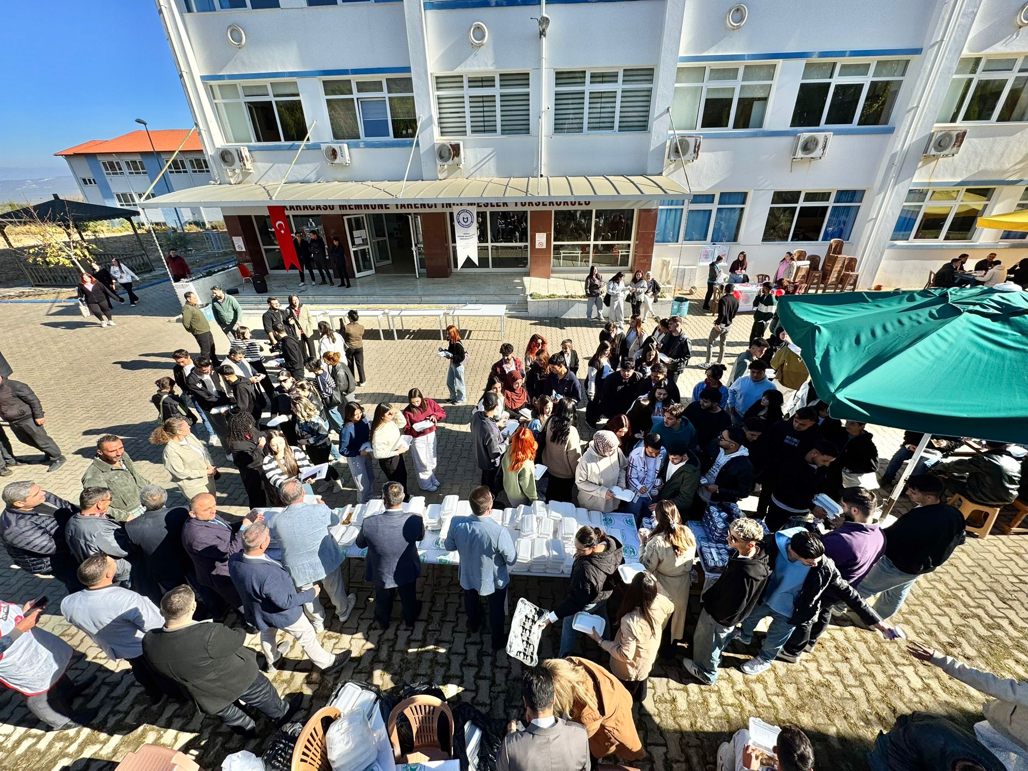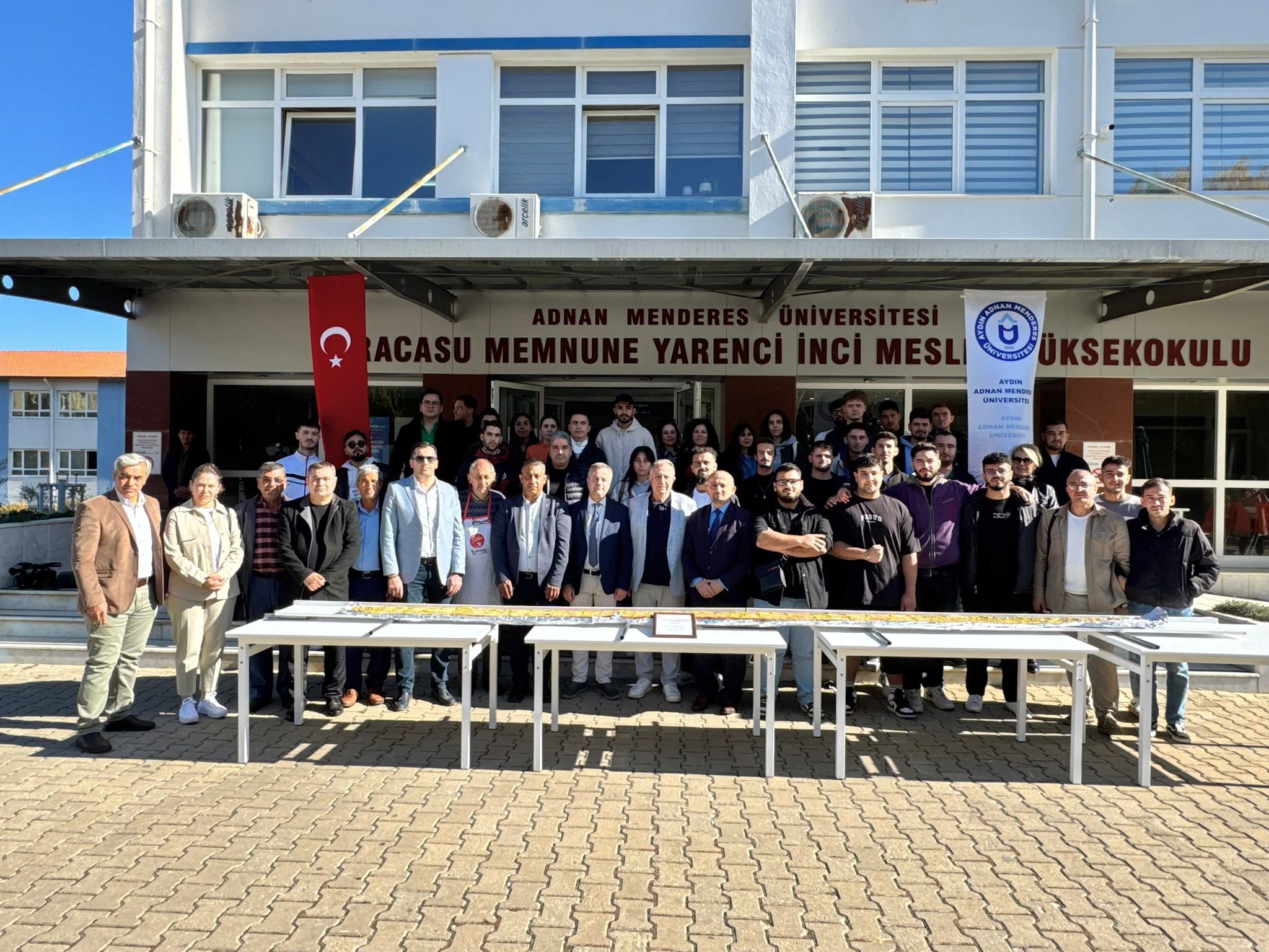 Karacasu Esnafı, ilçe için önemli bir yeri olan Karacasu MYO ve öğrencilerine 2024-2025 eğitim-öğretim döneminde pide ikram ederek ‘Hoş geldiniz’ dedi. Akademik çalışmalarla olduğu kadar ilçe ekonomisi için bir değer olan Karacasu MYO öğrencilerine bir jest yapmak isteyen Karacasulu esnaflar, Karacasu Esnaf ve Sanatkarlar Odası’nın organizasyonunda anlamlı bir çalışma gerçekleştirdi. Esnafların maddi destekleriyle pideciler tarafından hazırlanan 600'ü aşkın kıymalı pide ve 6,5 metre uzunluğundaki tahinli pide öğrencilere ikram edildi. Okul bahçesinde Yüksekokul Müdürümüz Mehmet Taşdelen'in ev sahipliği yaptığı etkinliğe idari ve akademik personelimizle birlikte öğrencilerimizin yanı sıra Karacasu Belediye Başkanı Mustafa Büyükyapıcı, Karacasu Esnaf ve Sanatkarlar Odası Başkanı Zafer Karabacaklı ve yönetim kurulu üyeleri, Karacasu Şoförler ve Otomobilciler Odası Başkanı Mustafa Gülgen katıldı. Etkinlikte Karacasu İlçe Müftüsü Yunus Erdoğan dua okudu.