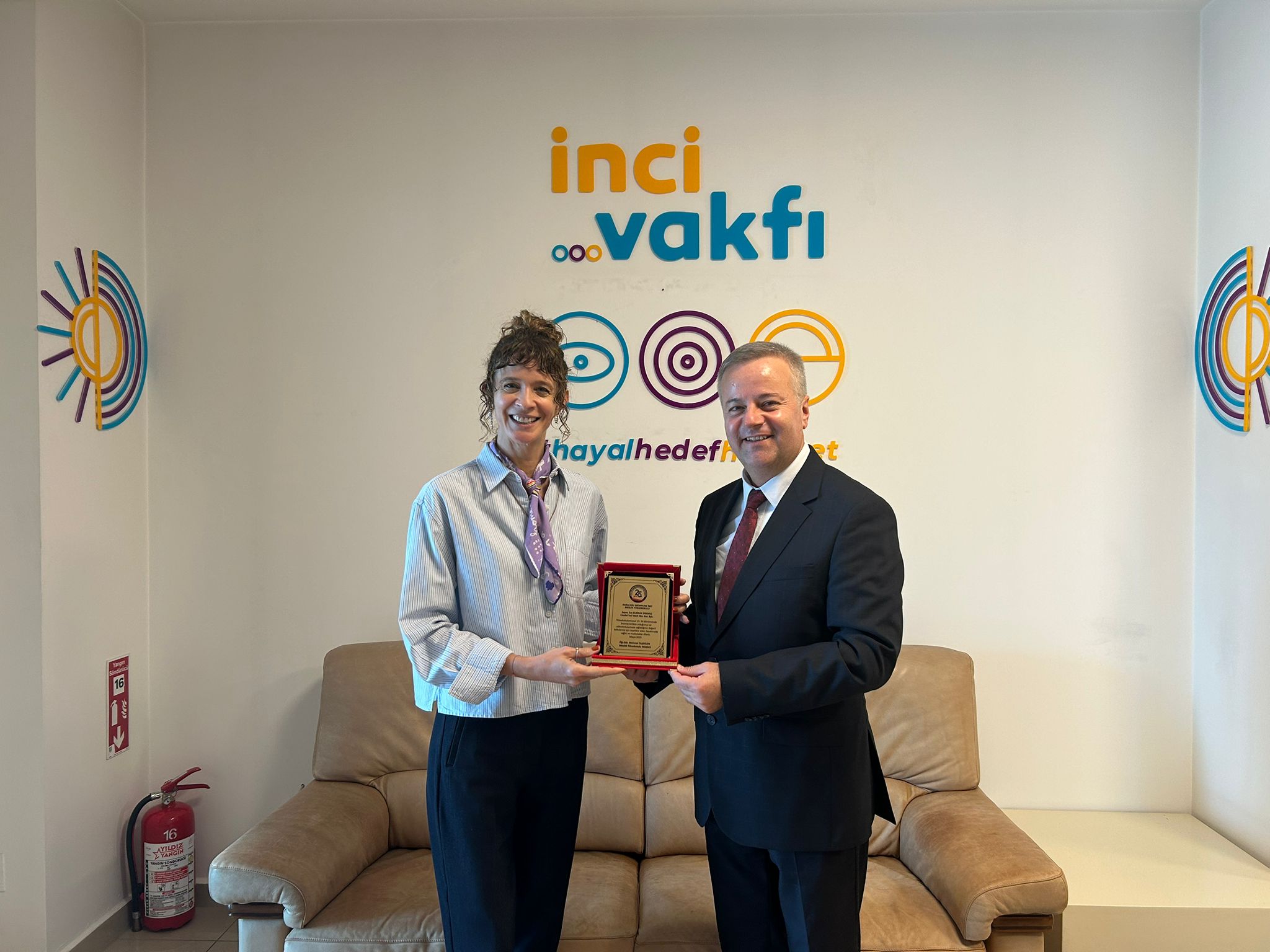 Ziyaret, Karacasu Memnune İnci MYO Müdürü Öğr. Gör. Mehmet Taşdelen’in okulun 25. Yılı anısına hazırlanan teşekkür plaketini, İnci Vakfı Yönetim Kurulu Başkanı Ece Elbirlik Ürkmez’e takdim edilmesiyle son buldu.