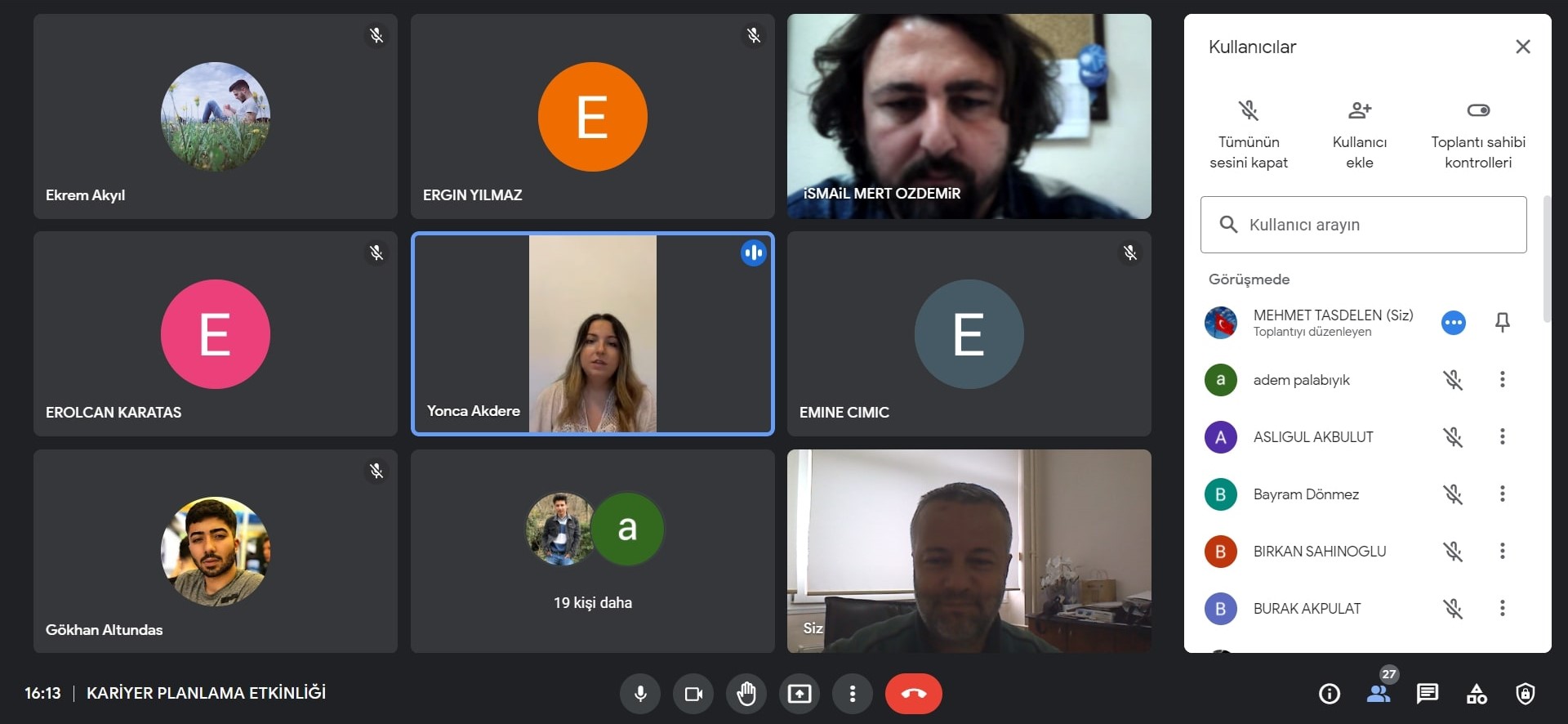 Karacasu Memnune İnci Meslek Yüksekokulu Öğr. Gör. Mehmet TAŞDELEN’in moderatörlüğünü yaptığı toplantıda, Dominik Cumhuriyeti’nde ANEX Tour seyahat acentesinde operasyon uzmanı olarak çalışan Akdere, mezuniyet sonrasındaki kariyer