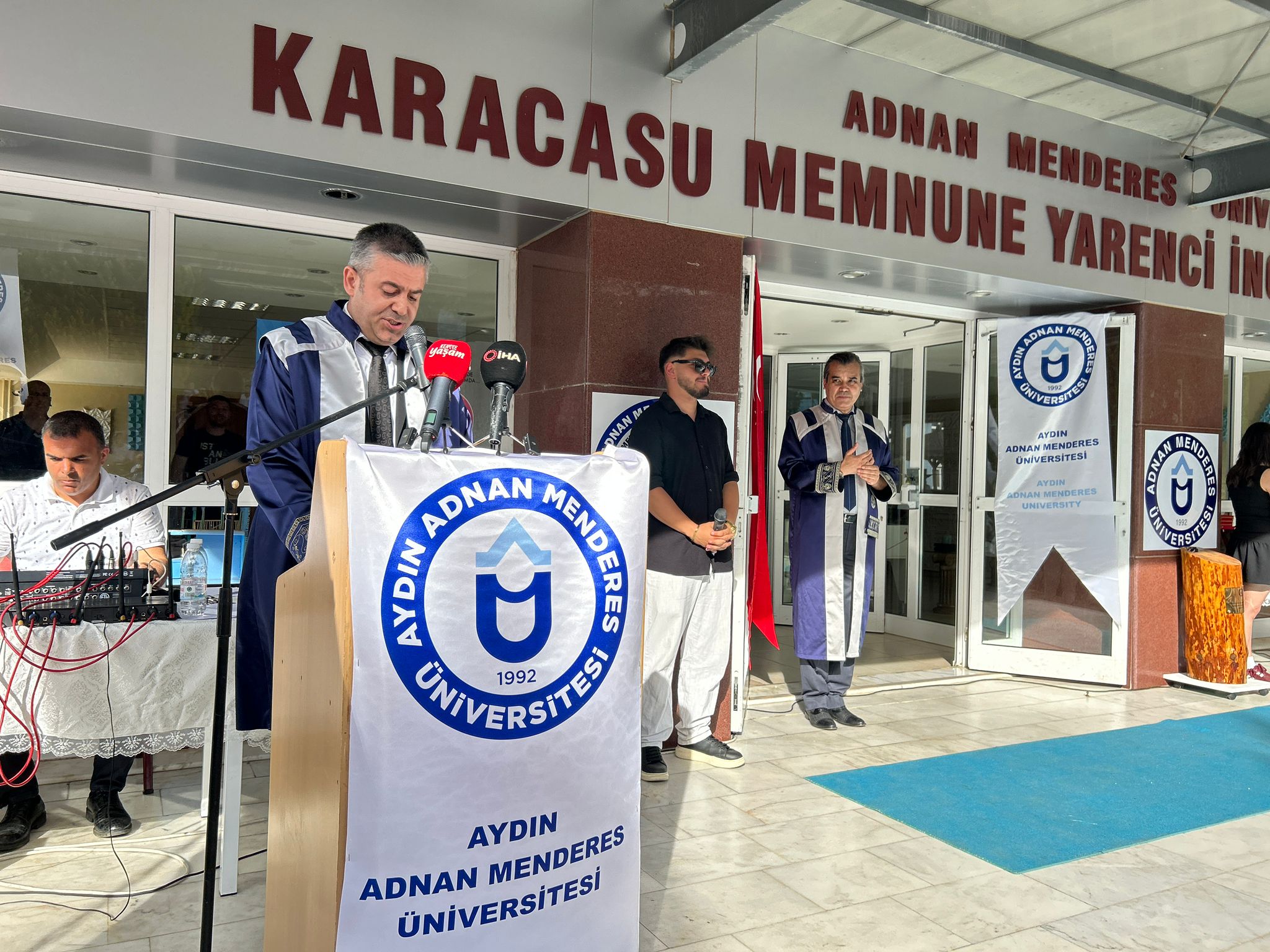 Aydın Adnan Menderes Üniversitesi’ne baÄŸlı Meslek Yüksekokulumuzda 23 Mayıs Cuma günü gerçekleÅŸtirilen mezuniyet töreni, bu yıl 25. kuruluÅŸ yıl dönümümüzün gururuyla birlikte kutlandı. Mezuniyet heyecanı ile çeyrek asırlık geçmiÅŸin gururunun bir arada yaÅŸandığı törene; ilçe belediye baÅŸkanı, rektör yardımcımız, ilçe protokolü, iÅŸ dünyasından temsilciler, sivil toplum kuruluÅŸları, üniversitemiz yüksekokul müdürleri, akademik ve idari personelimiz ile öÄŸrencilerimiz ve aileleri katılım saÄŸladı. Tören, Yüksekokul Müdürümüz ÖÄŸr. Gör. Mehmet TaÅŸdelen’in açılış konuÅŸmasıyla baÅŸladı. ÖÄŸr. Gör. TaÅŸdelen, öÄŸrencilerimizin baÅŸarılarından duyduÄŸu memnuniyeti dile getirerek, 25 yıllık süreçte yüksekokulumuzun geliÅŸim sürecinde bahsederek emeÄŸi geçen tüm personel ve paydaÅŸlarımıza teÅŸekkür etti.
