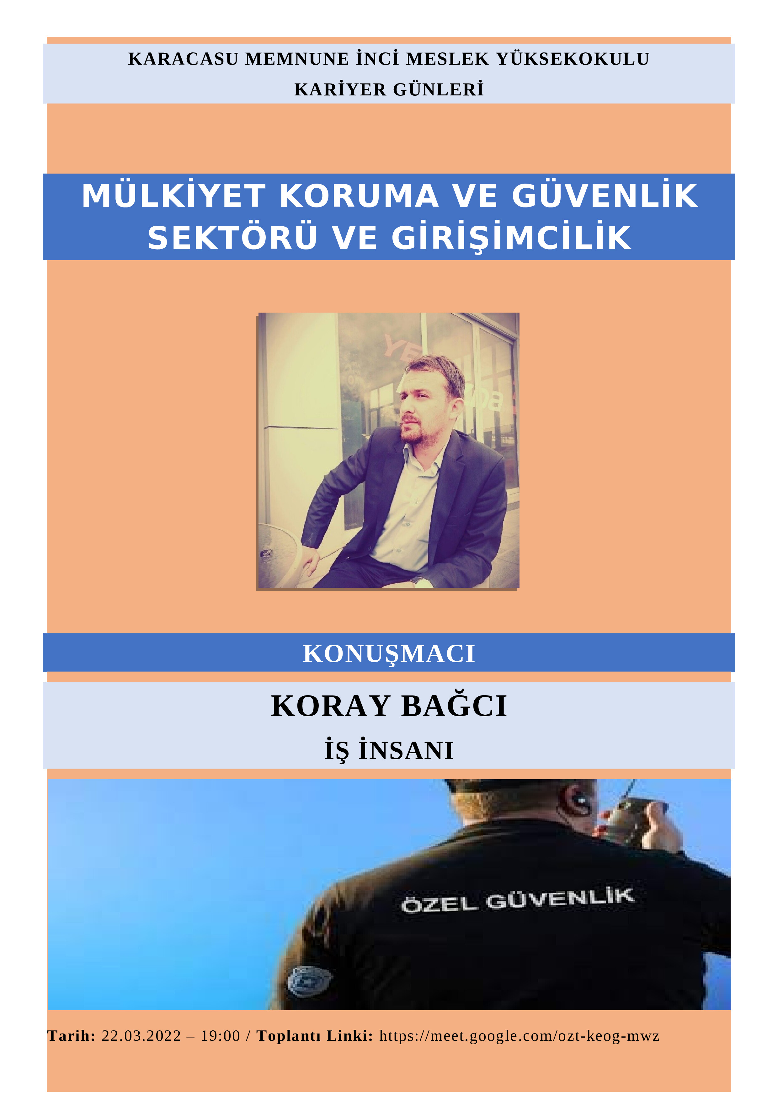 Karacasu Memnune İnci MYO yaklaşık iki ay boyunca sürmesi planlanan kariyer etkinlikleri kapsamında 22 Mart 2022 tarihinde “Mülkiyet Koruma ve Güvenlik Sektöründe Girişimcilik” adlı seminer çevrimiçi olarak gerçekleştirildi.